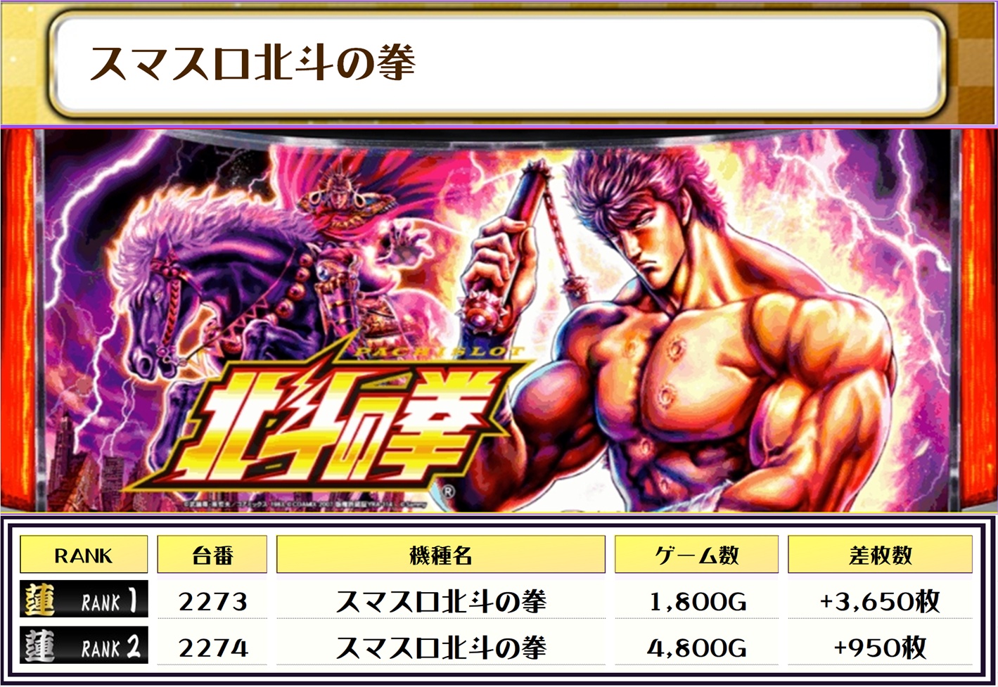TOPに輝いた北斗転生2は7台もランクインと盛り上がっていました😳💥💥💥