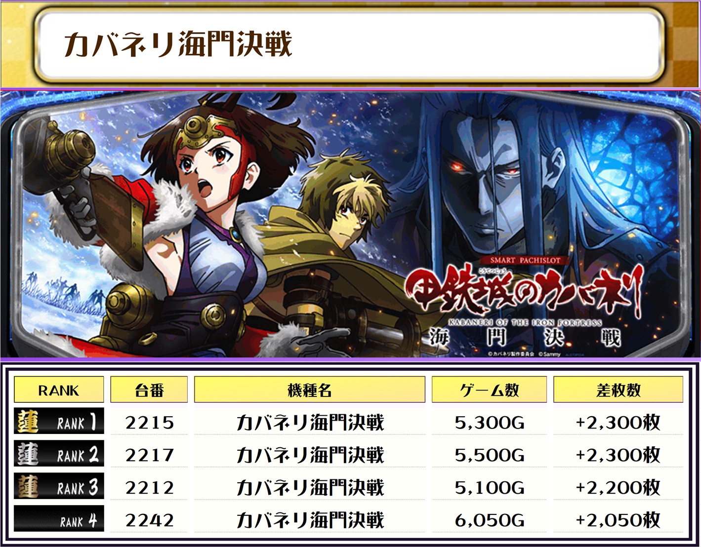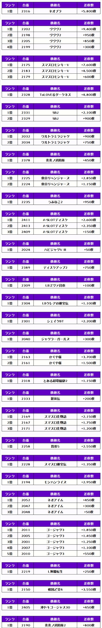 2位は【ヴヴヴ2・2202番台】の+9,400枚、そして3位は【スマスロモンキーV・2175番台】の+7,600枚がランクインっ🏆🏆🏆🏆