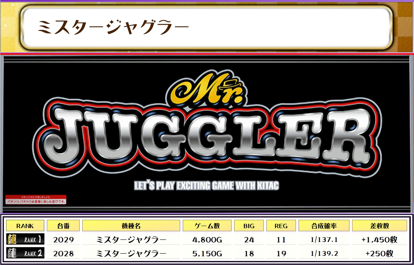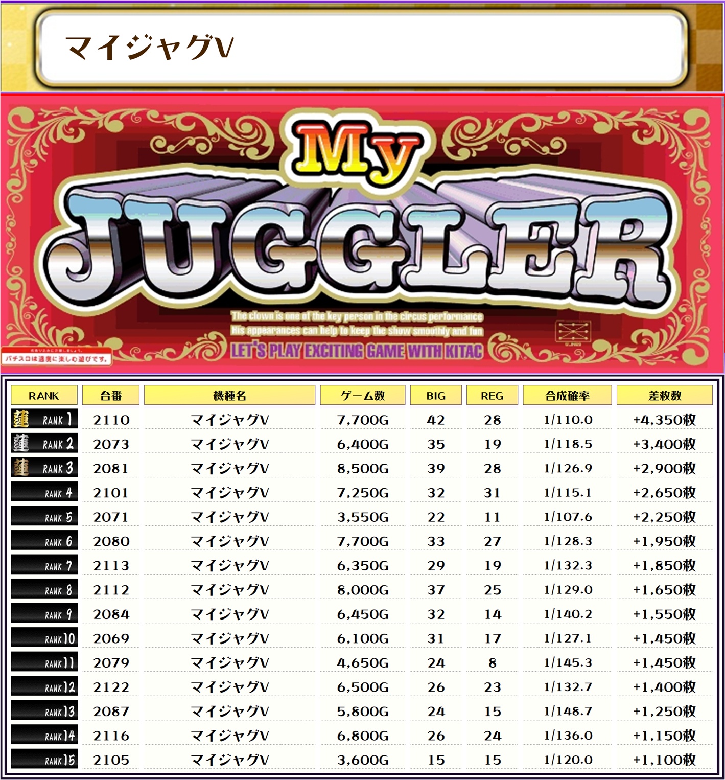 またマイジャグVのシマからは設置台数の半分である32台が、プラス差枚でフィニッシュしていましたね🤡