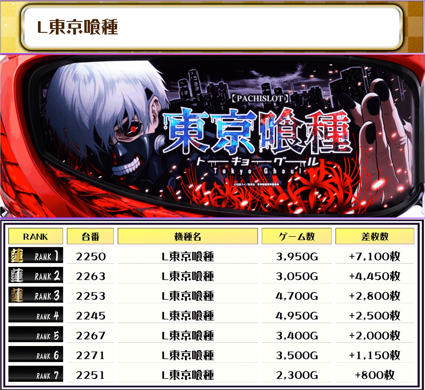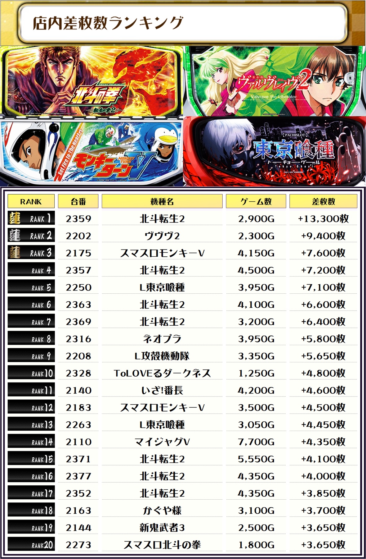 最後に、この日の店内差枚ランキングをどうぞっ❗️