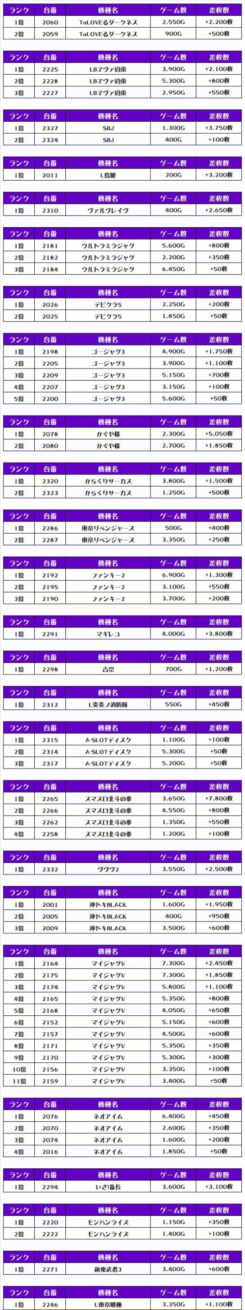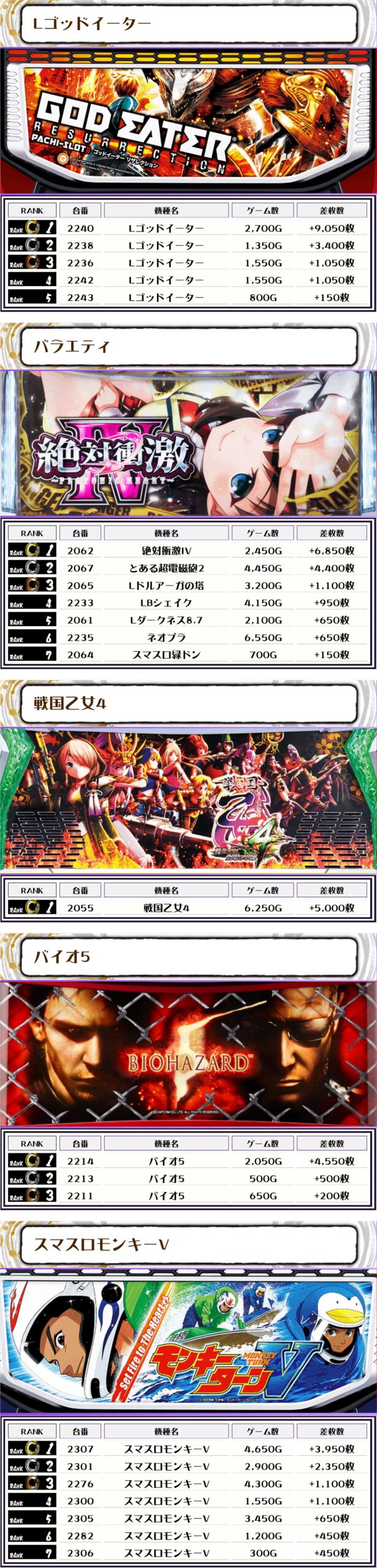 そして、全体の差枚ランキングがこちらっ🌟