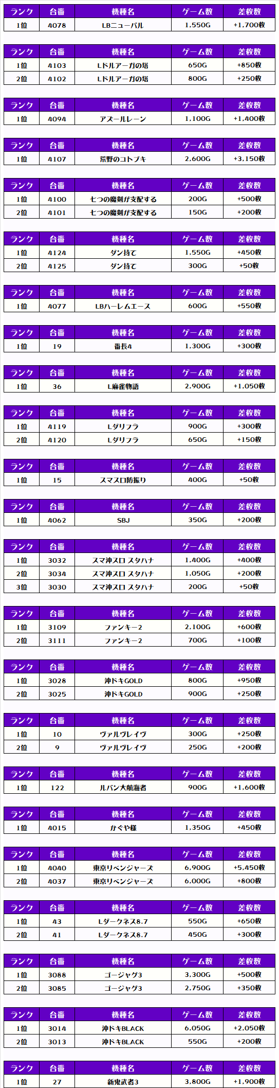その他機種の差枚ランキングはコチラ!