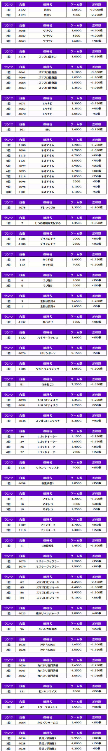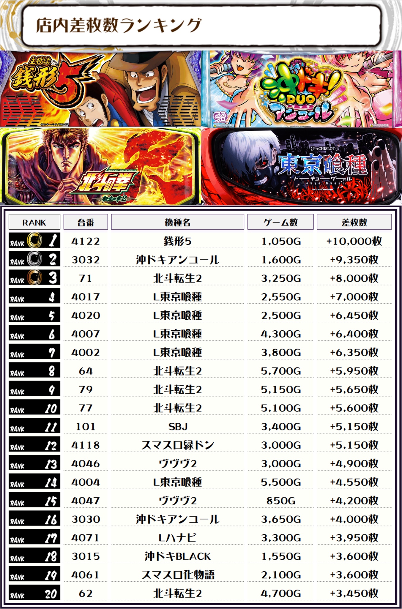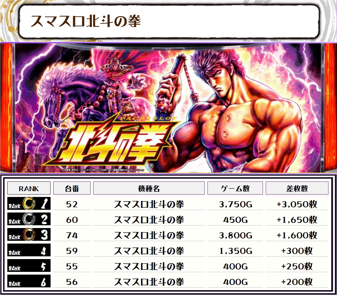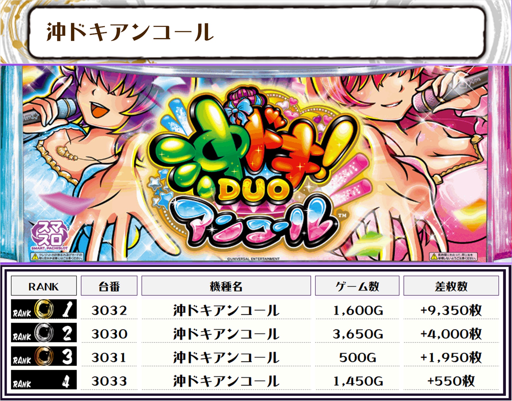 2位には【沖ドキアンコール・3032番台】の+9,350枚、そして3位には【北斗転生2・71番台】の+8,000枚がランクインっ🏆🏆🏆🏆