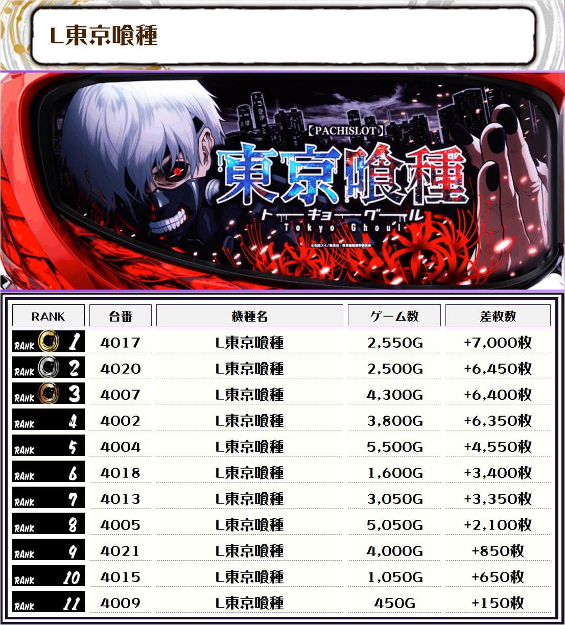 北斗転生2とL東京喰種のシマは大量出玉でのランクインを多数確認でき、優秀台が多かったことを察しました💡💡💡