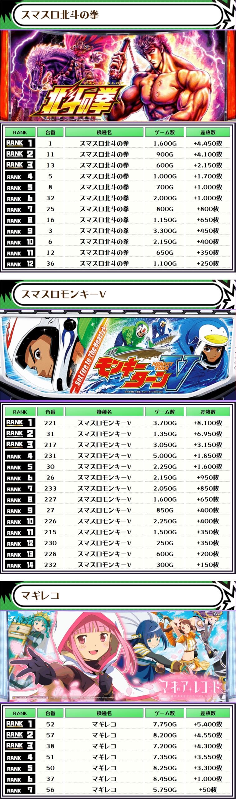 それでは早速、機種別差枚ランキングをチェックしますか❗️
