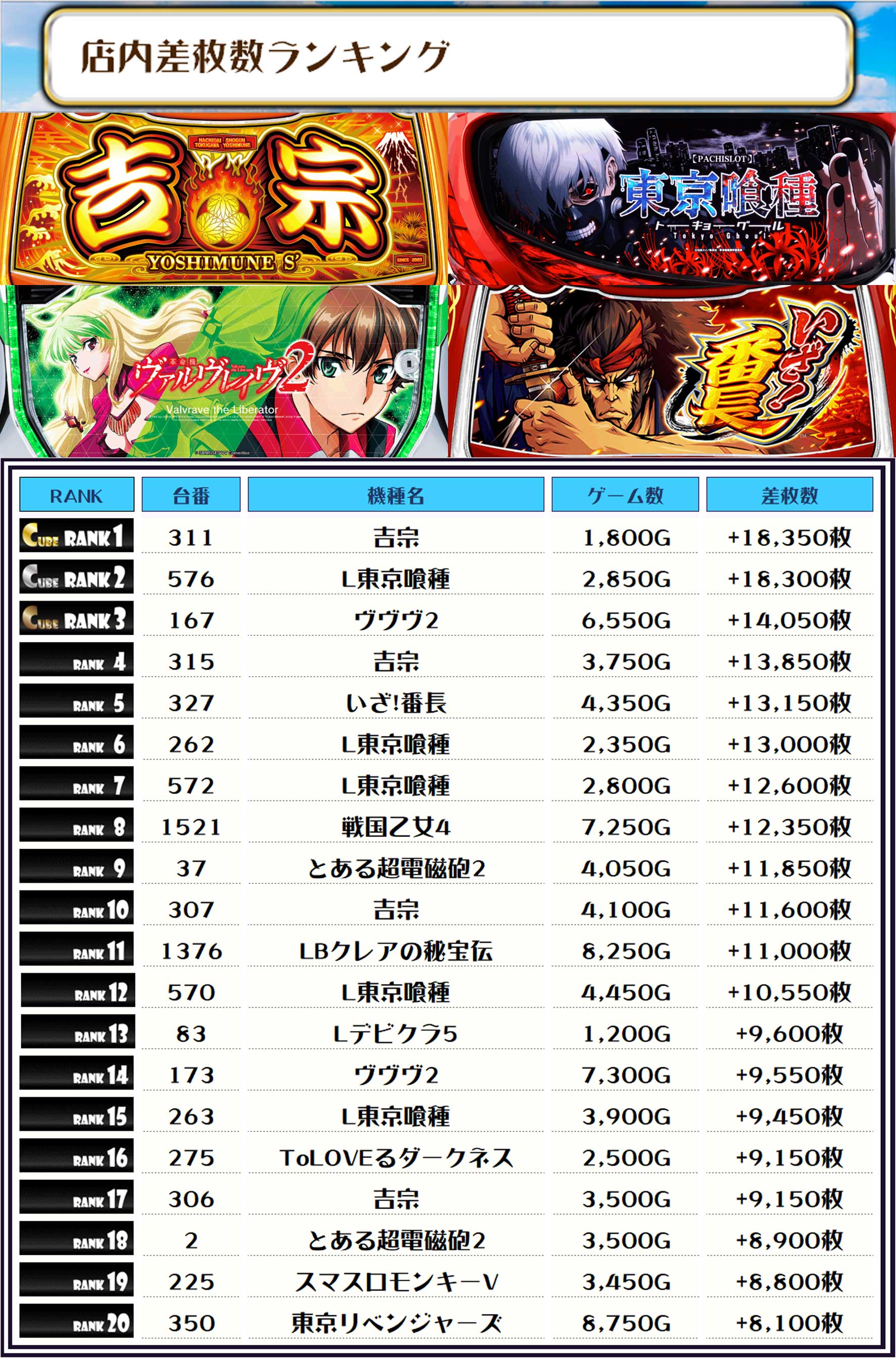 最後に、この日の店内差枚ランキングをご覧ください❗️