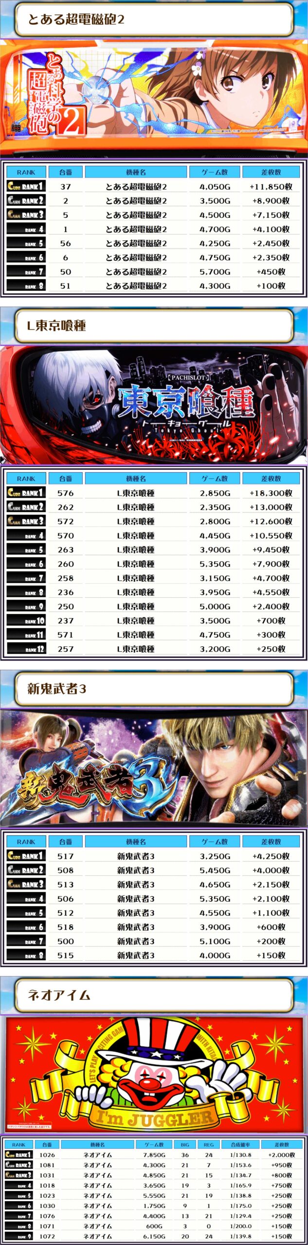 ピックアップしたのはとにかく稼働が高く、優秀台が多かったと思われる機種になります🔎