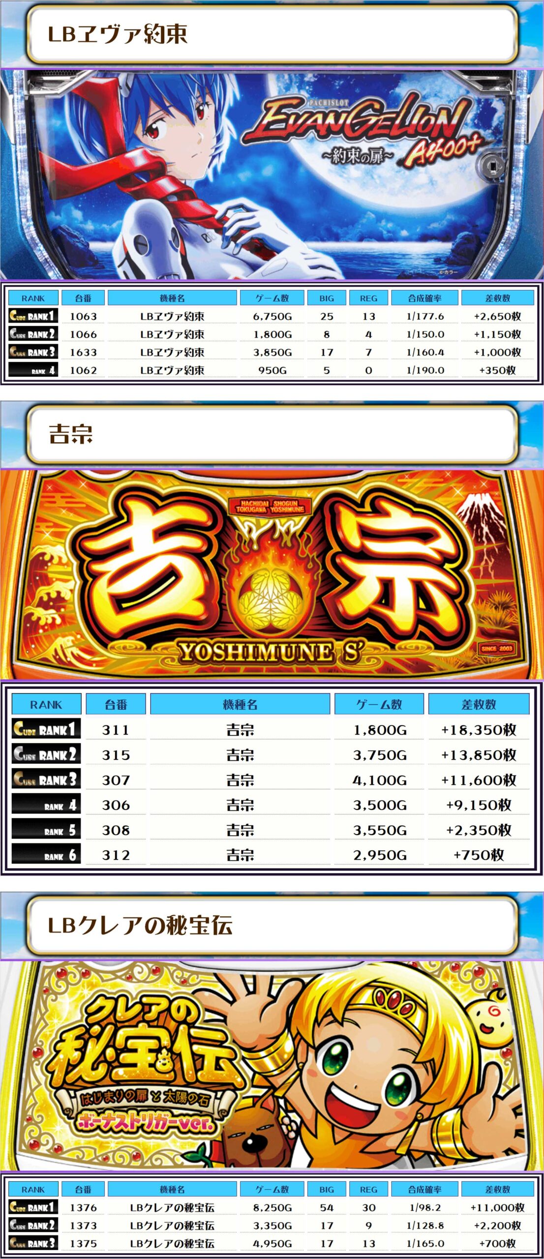 万枚オーバー×12台、ランキングすべてが8000枚オーバーだなんて😲こんなランキング見たことないでやんすよぉ…