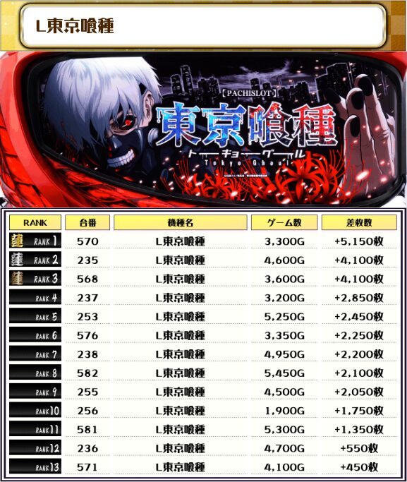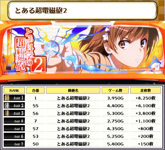 最後に、この日の店内差枚ランキングをご覧ください❗️