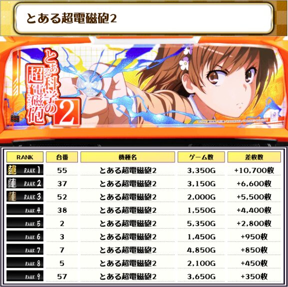 2位には【とある超電磁砲2・55番台】の+10,700枚、3位には【吉宗・255番台】の+10,550枚がランクインっ🏆🏆🏆🏆