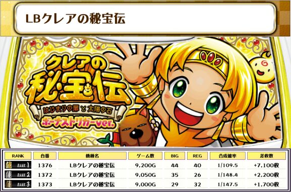 安定して、LBクレアの秘宝伝やジャグ系が今回も高稼働だったぜ‼️