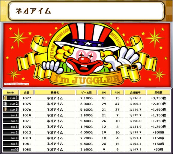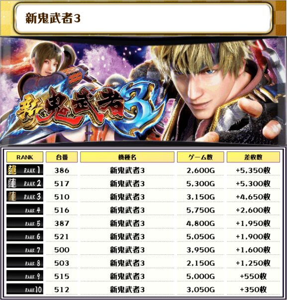 最後に、この日の店内差枚ランキングをご覧ください❗️
