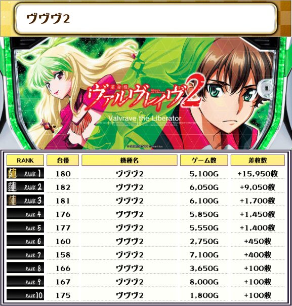 この日、全体の差枚トップに輝いたのは【ヴヴヴ2・180番台】の+15,950枚🎊🎊🎊🎊🎊