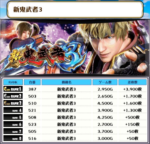 2位には【戦国乙女4・1516番台】の+10,950枚、3位には【いざ!番長・318番台】の+9,550枚がランクインっ🏆🏆🏆🏆
