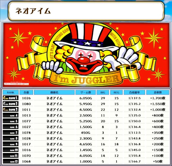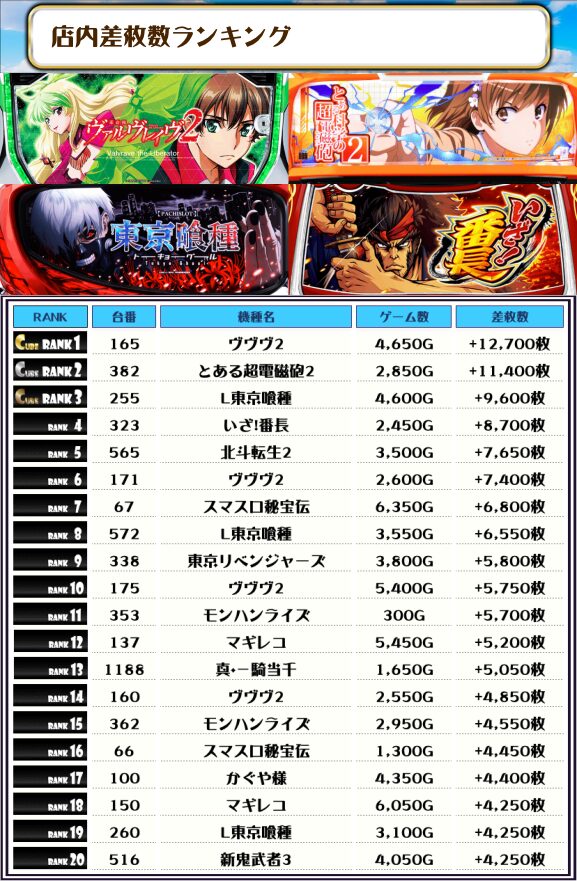 最後に、この日の店内差枚ランキングをご覧ください❗️