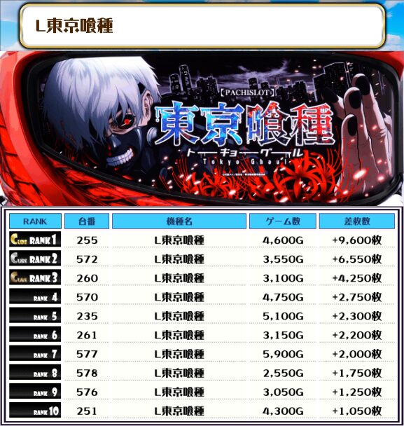 ランキング上位にあるとある超電磁砲2・L東京喰種なんかは特に絶好調な挙動を示す台があったみたいでやんすねっ👍
