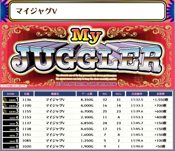 万枚突破は今回も4台‼️ ランキングを見るとバラエティに富んだ結果となっているな👍