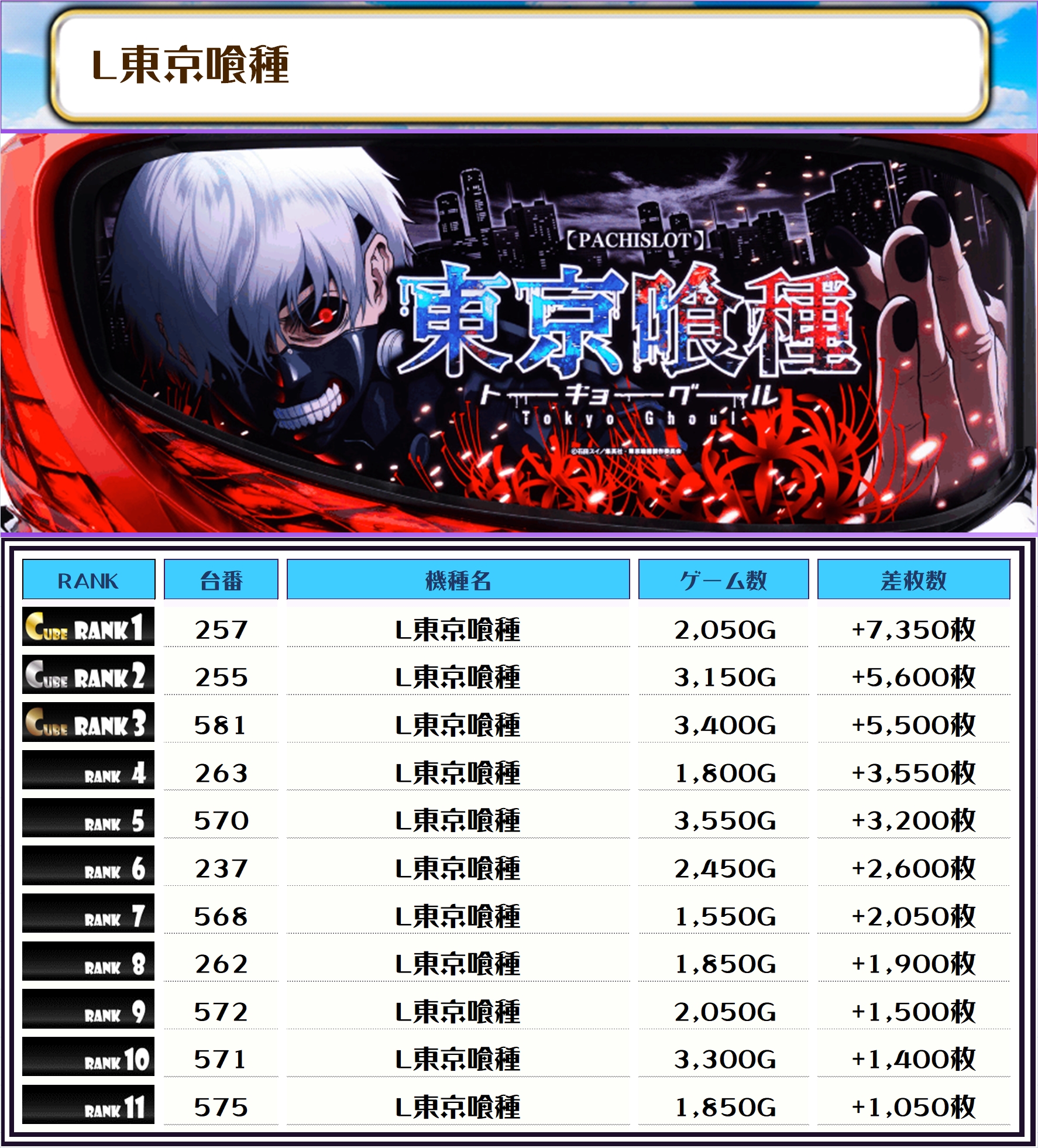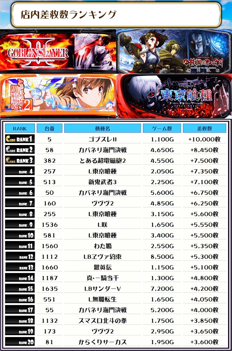 最後に、この日の店内差枚ランキングをご覧ください❗️