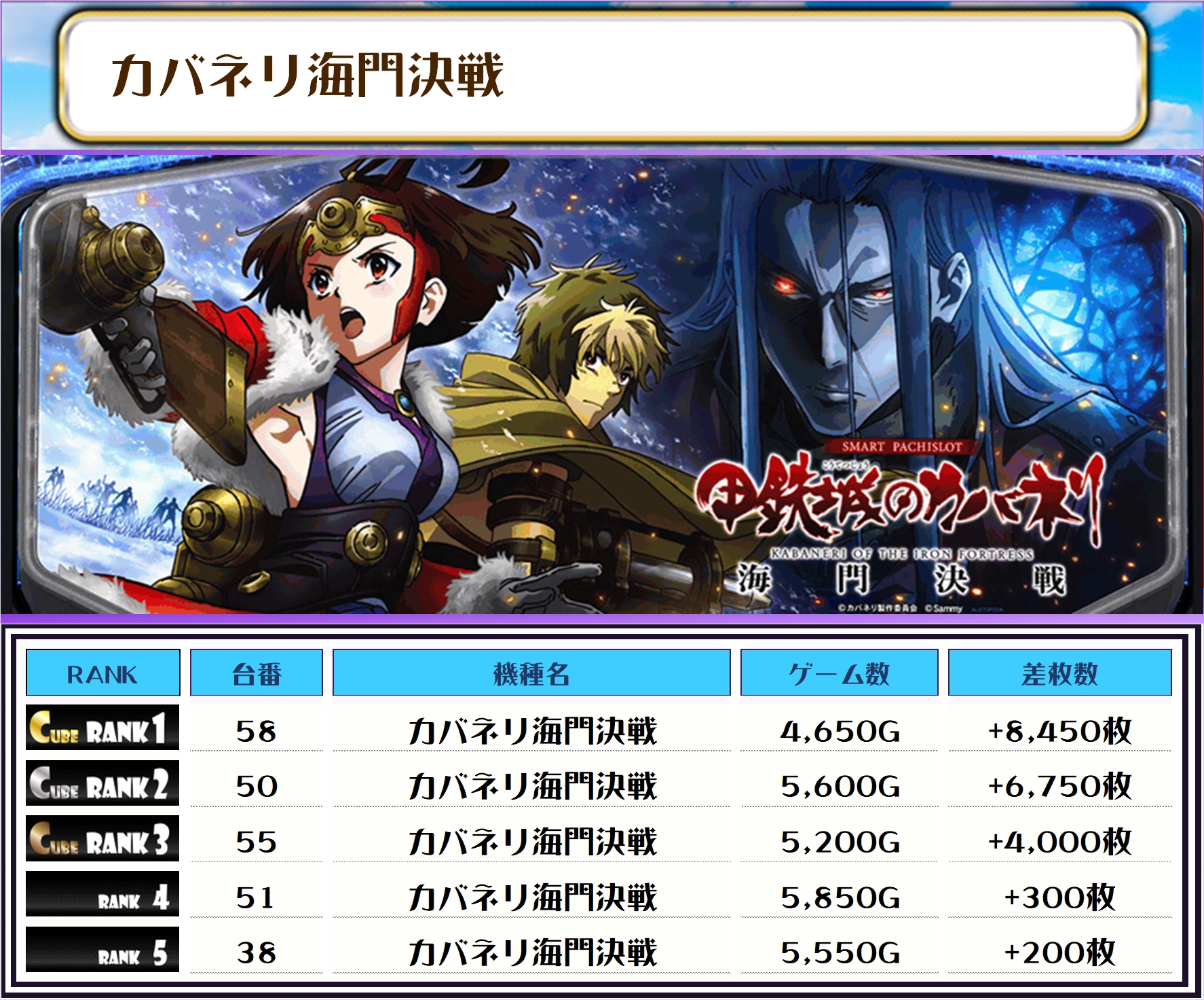 2位には【カバネリ海門決戦・58番台】の+8,450枚、そして3位には【とある電磁砲2・382番台】の+7,500枚がランクインっ🏆🏆🏆