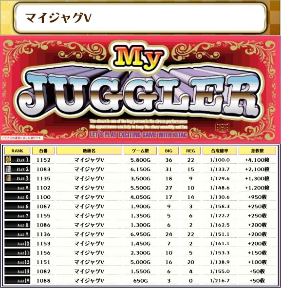 最後に、この日の店内差枚ランキングをご覧ください❗️