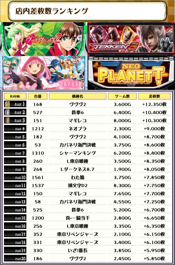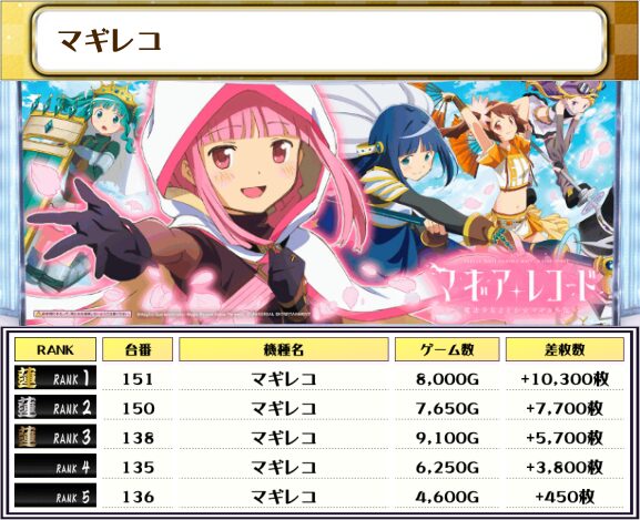 2位には【鉄拳6・527番台】の+10,400枚、3位にも【マギレコ・151番台】の+10,300枚がランクインっ🏆🏆🏆🏆