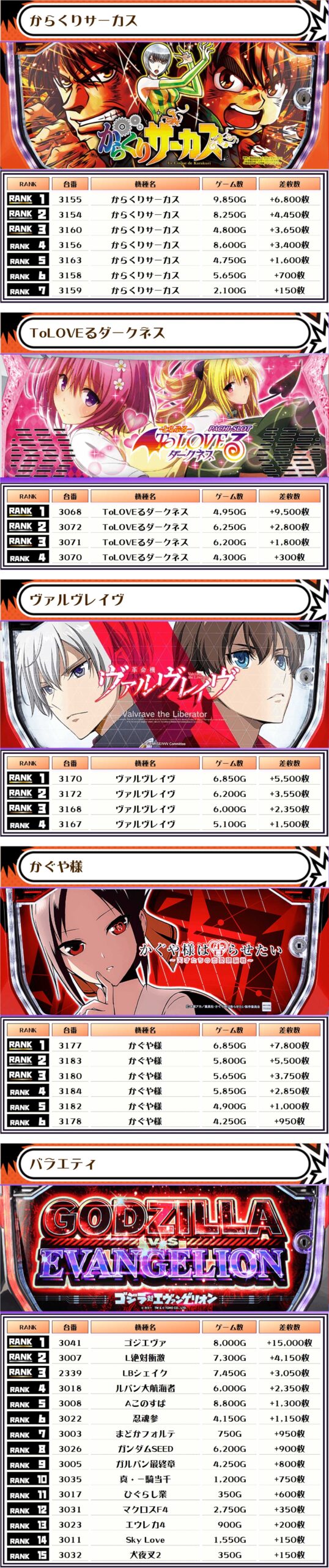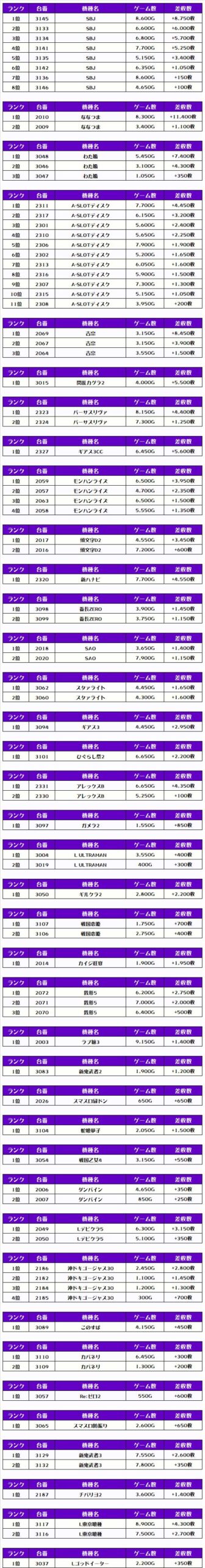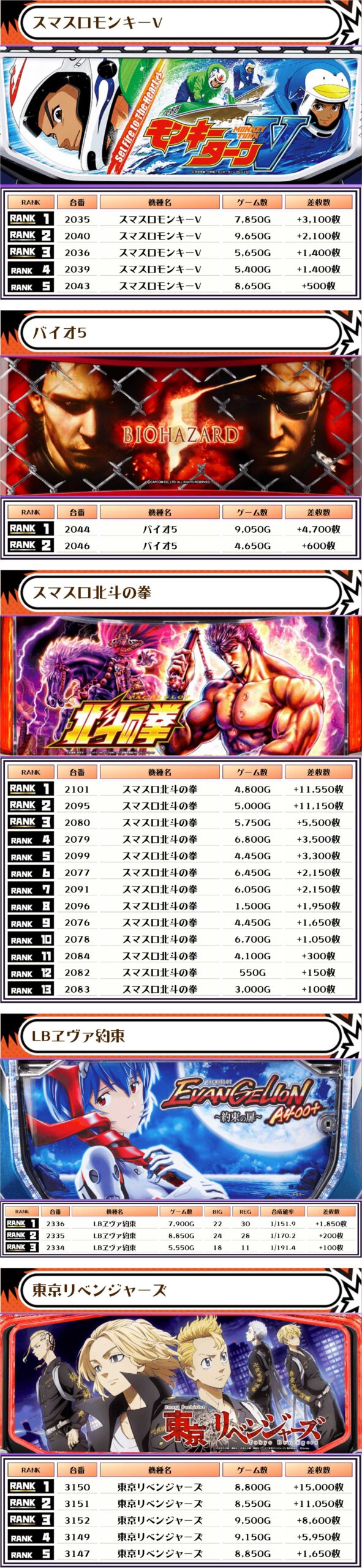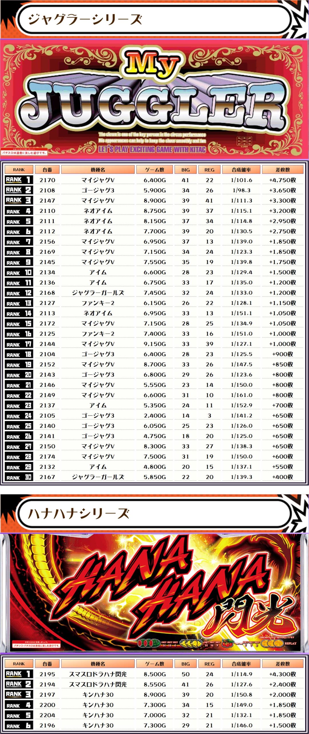 今回はランキングがすべて5000枚で埋め尽くされ、万枚オーバーが6台も出現😲💥😲💥😲くぅ~、ナイスですねぇ~👍