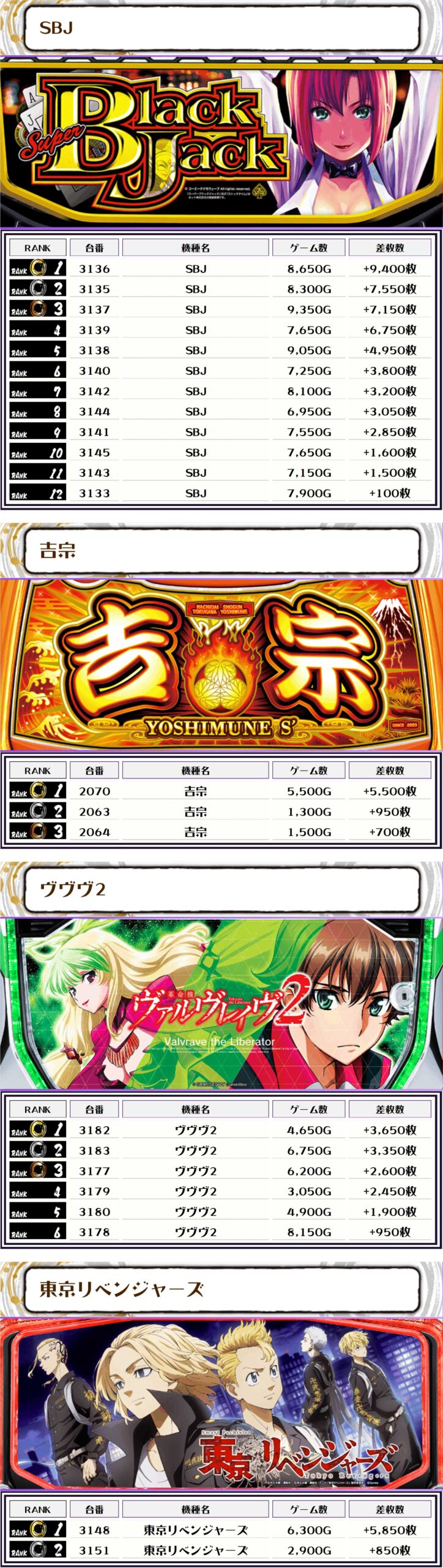 また、吉宗も同様にフル稼働だったのですが、こちらは不発気味だったのが残念😢そして、ヴヴヴ2・東京リベンジャーズには優秀台が複数見つかりましたよ~