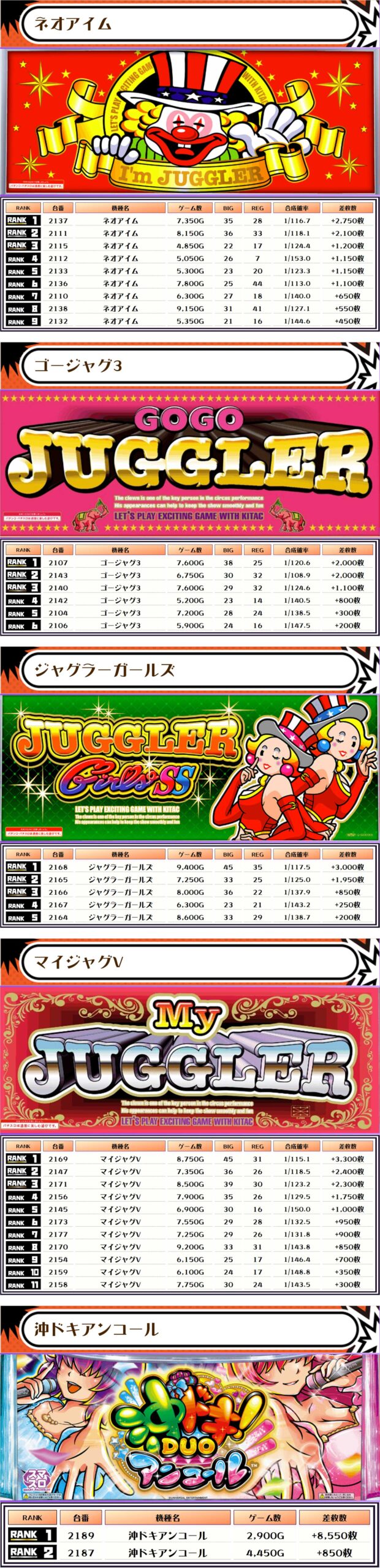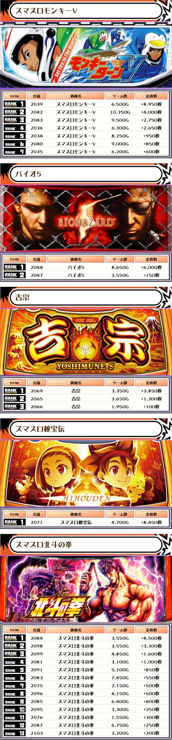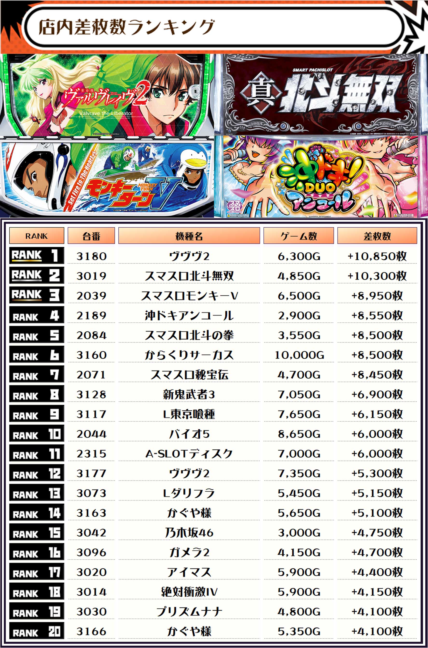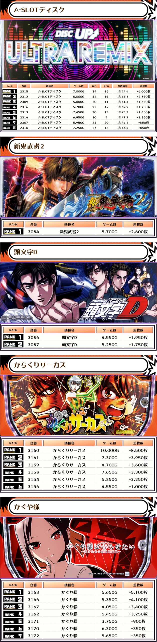今回はランキングがすべて4000枚で埋め尽くされ、万枚オーバーが2台も出現🔥🔥🔥くぅ~、ナイスですねぇ~👍