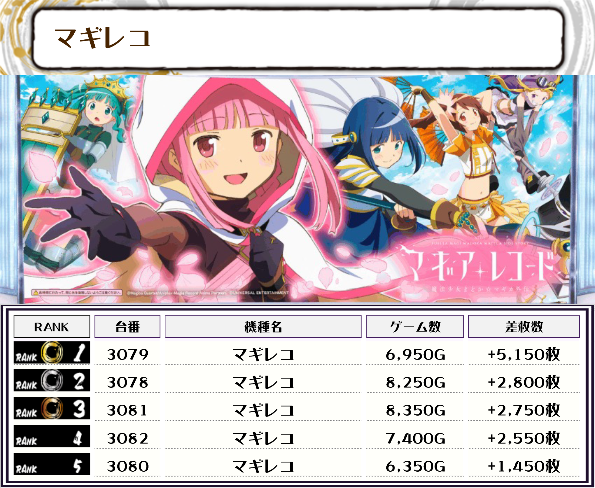 そして、この日全台を対象とした差枚ランキングがこちらになります‼️
