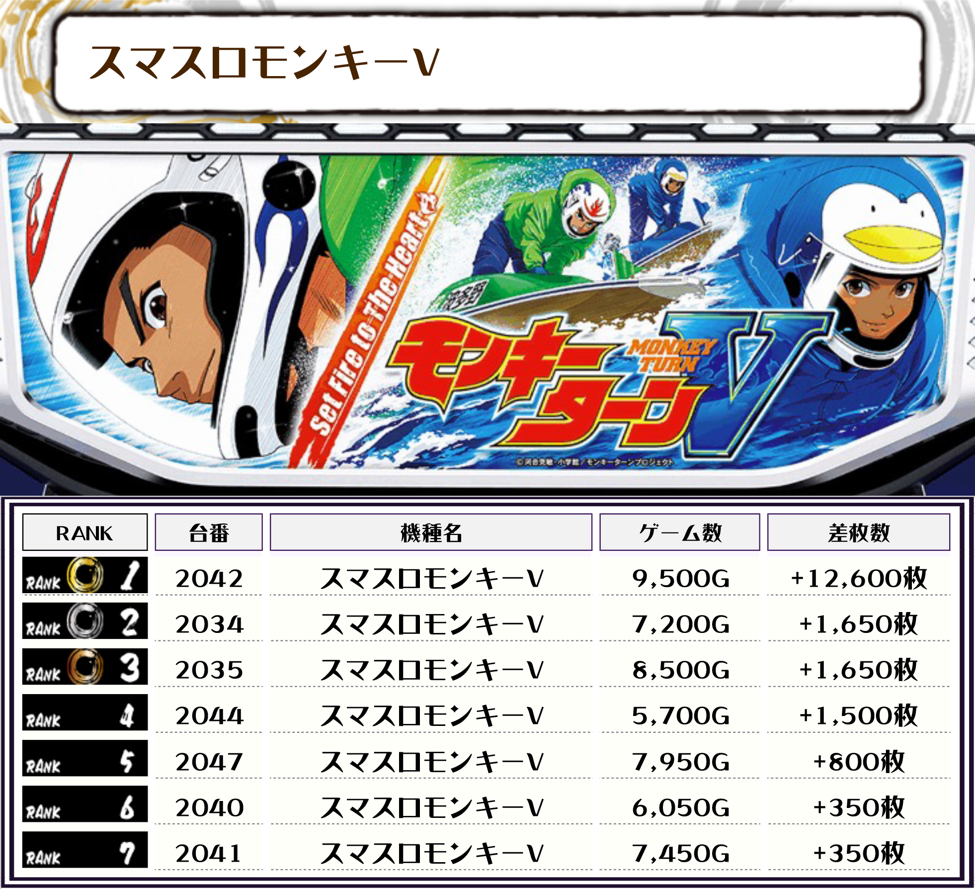 それでは、この日の機種別ランキングを見ていきましょう‼️