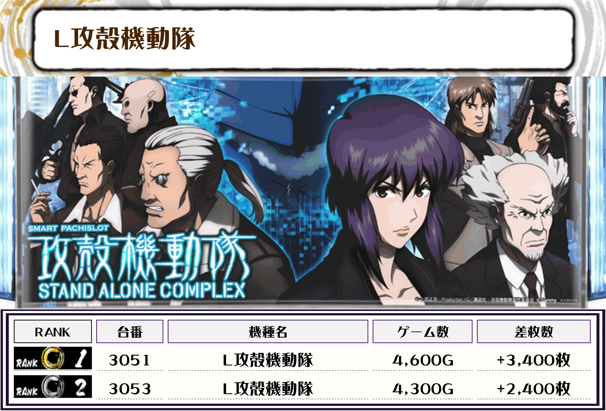 ピックアップした台は高稼働&勝率の良かった機種となるのですが、その中でも私的にはSBJ・マギレコ・L攻殻機動隊・バーサスリヴァが気になりましたね😲
