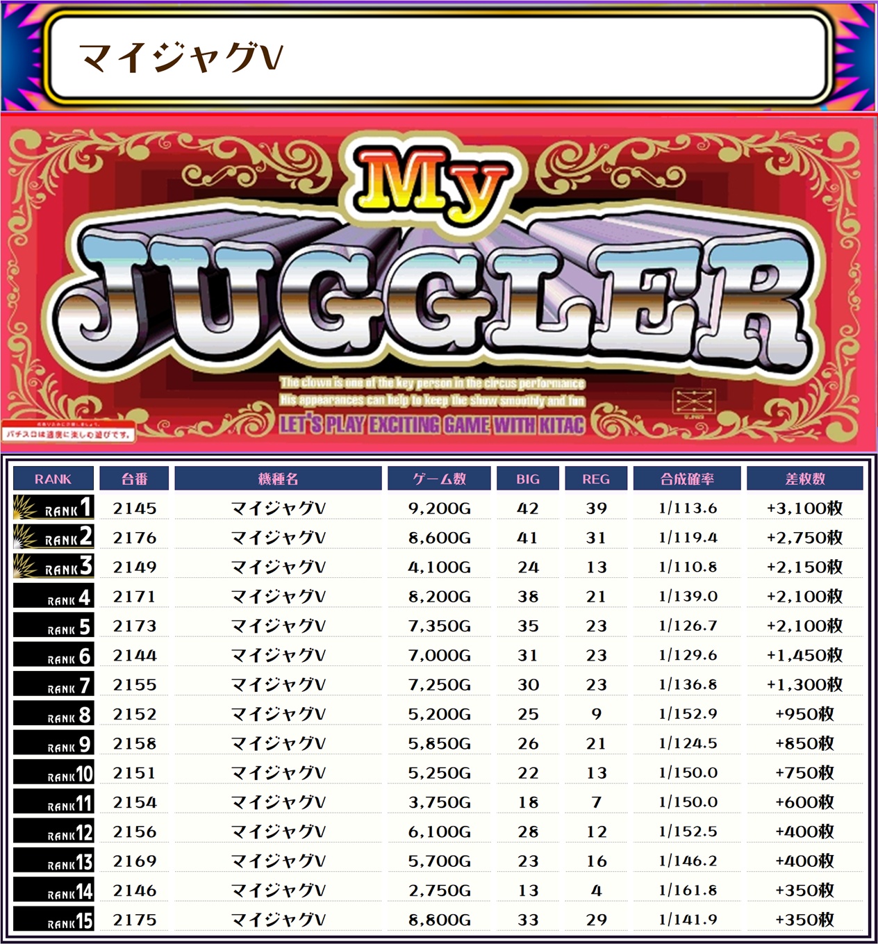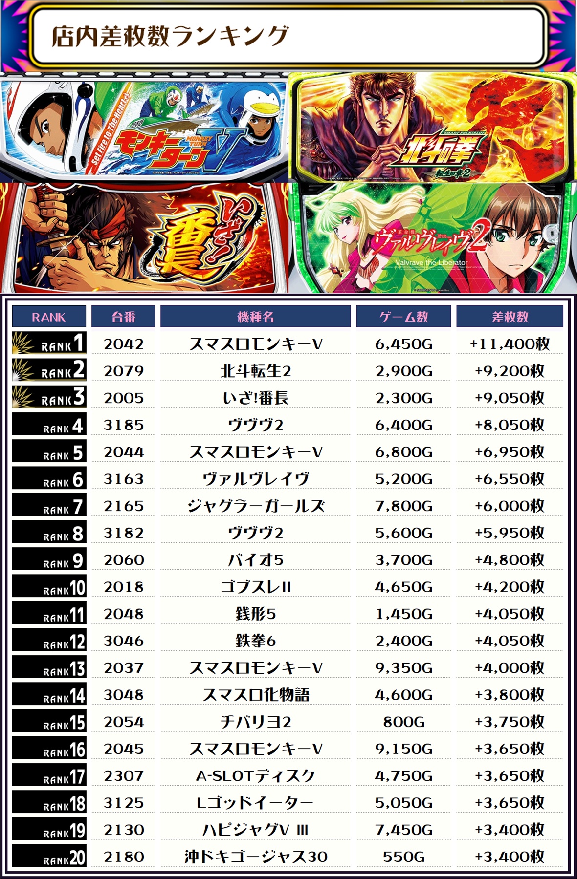 2位には【北斗転生2・2079番台】の+9,200枚、3位には【いざ!番長・2005番台】の+9,050枚がランクインっ🏆🏆🏆