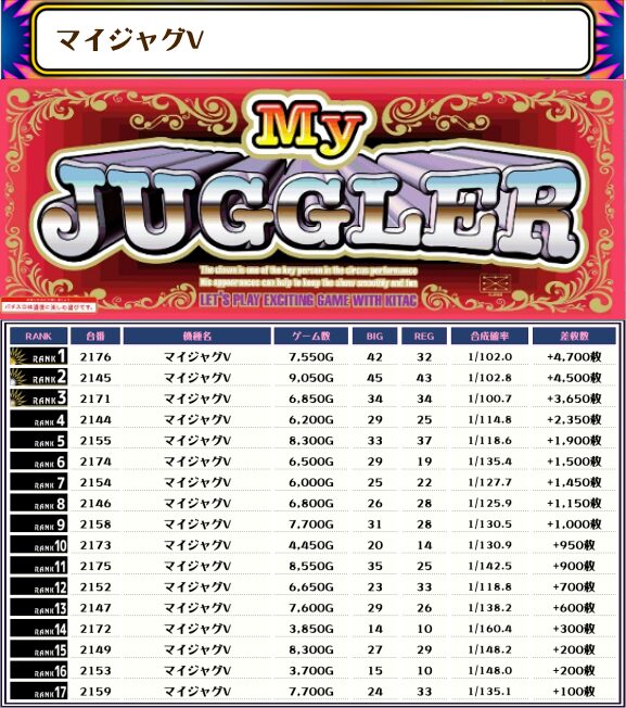 特にマイジャグVは優秀台が多かった印象でした!