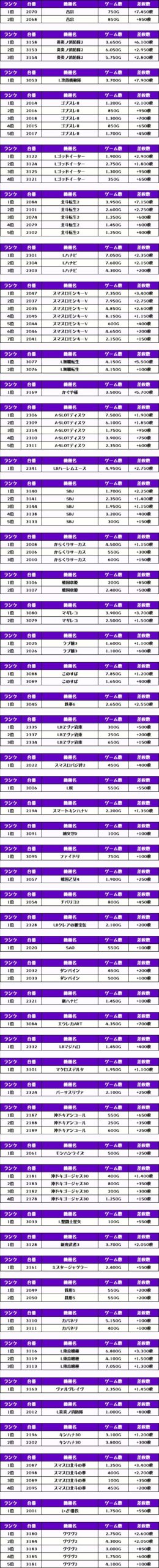 それでは、この日の【機種別差枚ランキング】を見ていきましょう❗️