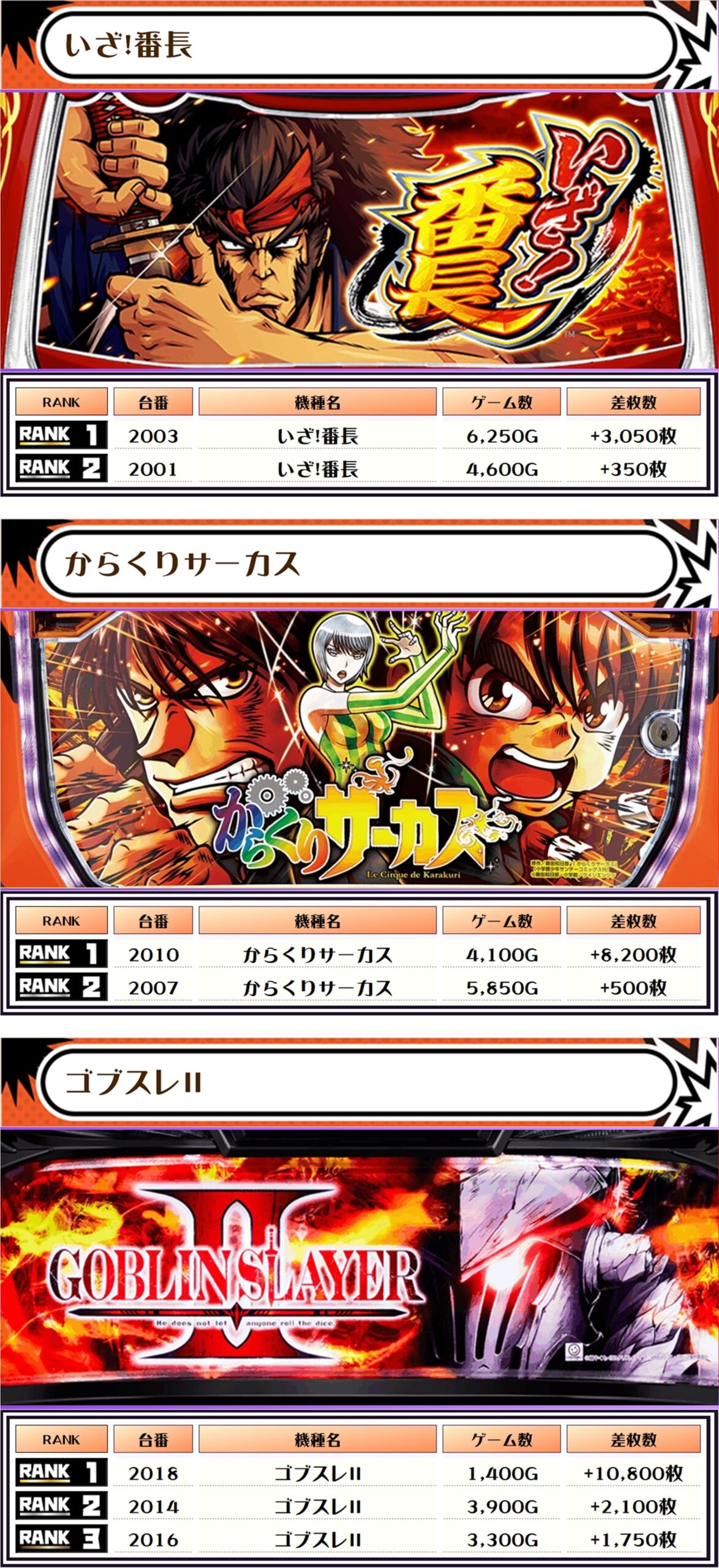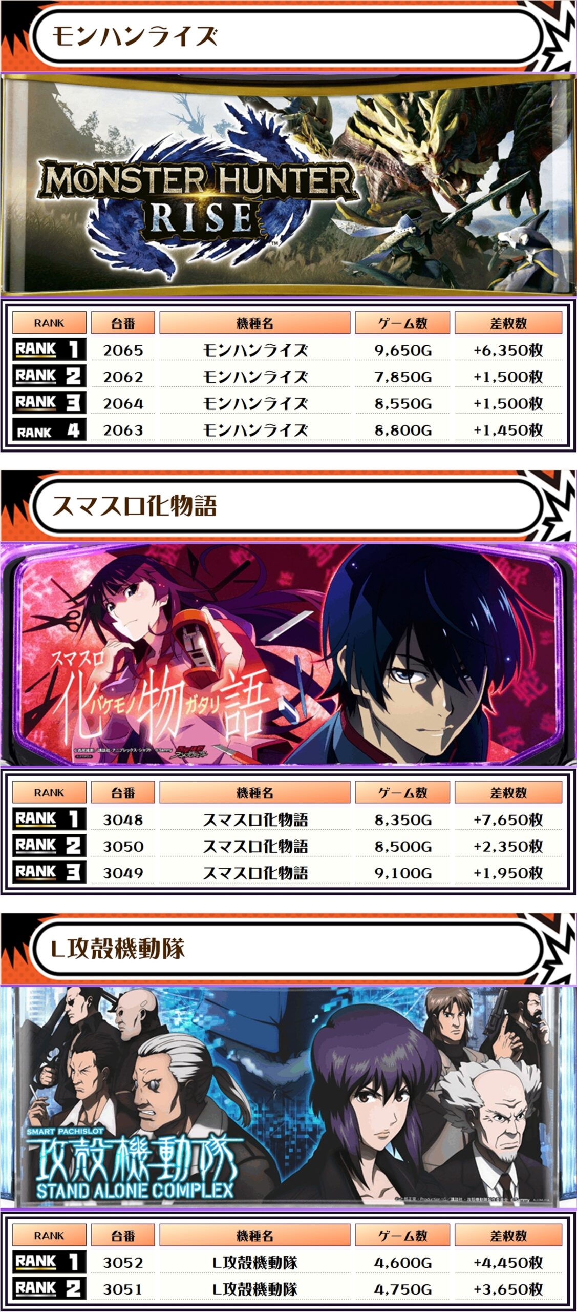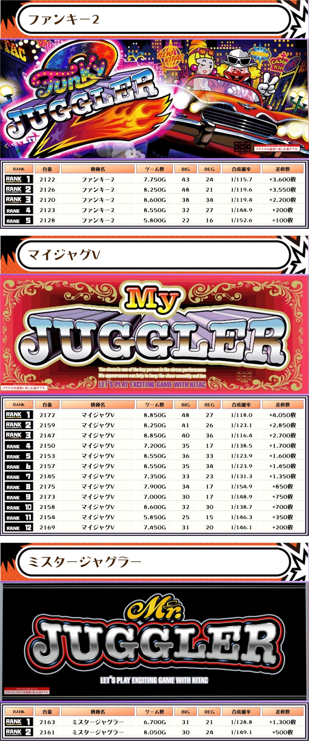 今回もランキングの大半は5000枚以上で埋め尽くされ、万枚オーバーが3台も出現🔥🔥🔥くぅ~、ベリーナイスですねぇ~👍