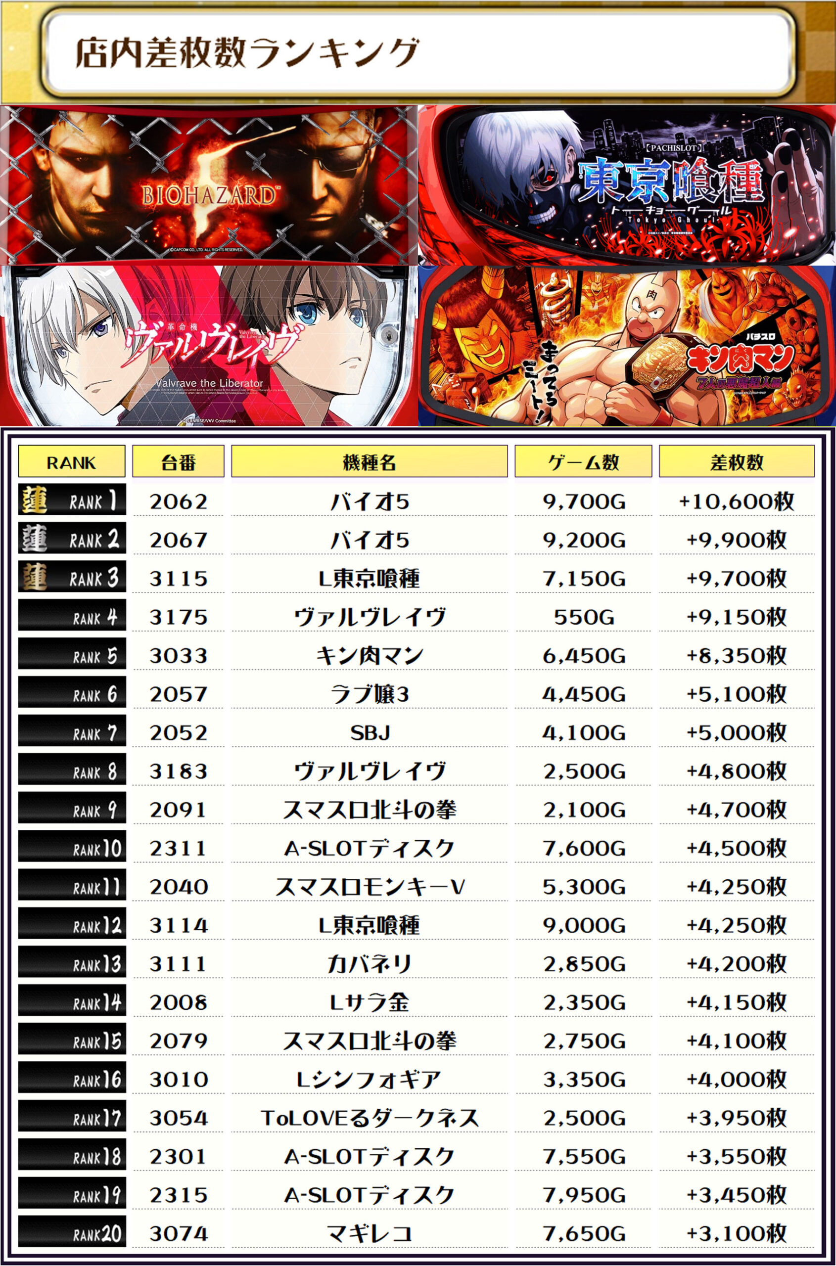 2位には【バイオ5・2067番台】の+9,900枚、3位には【L東京喰種・3115番台】の+9,700枚がランクイン✨