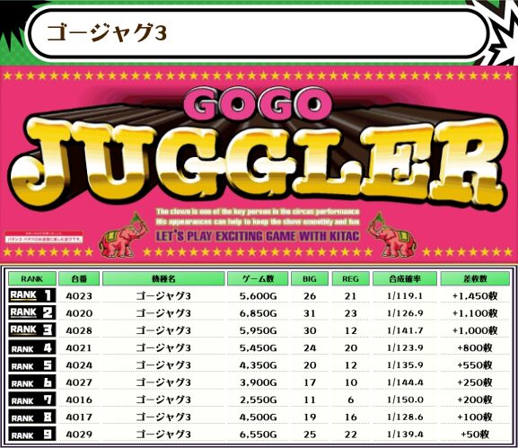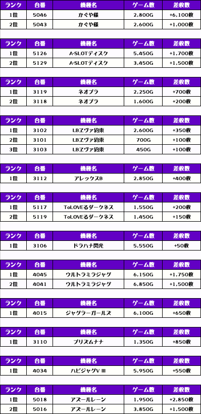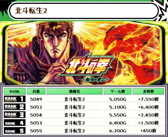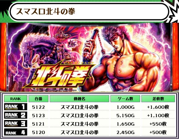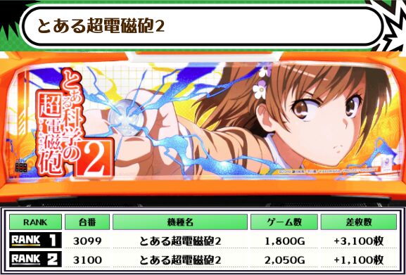 ということで、この日の店舗全体差枚数ランキングがこちら!!