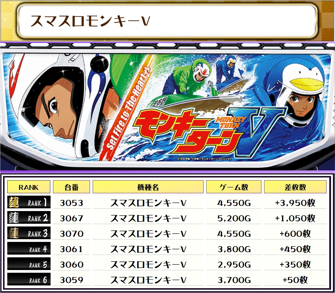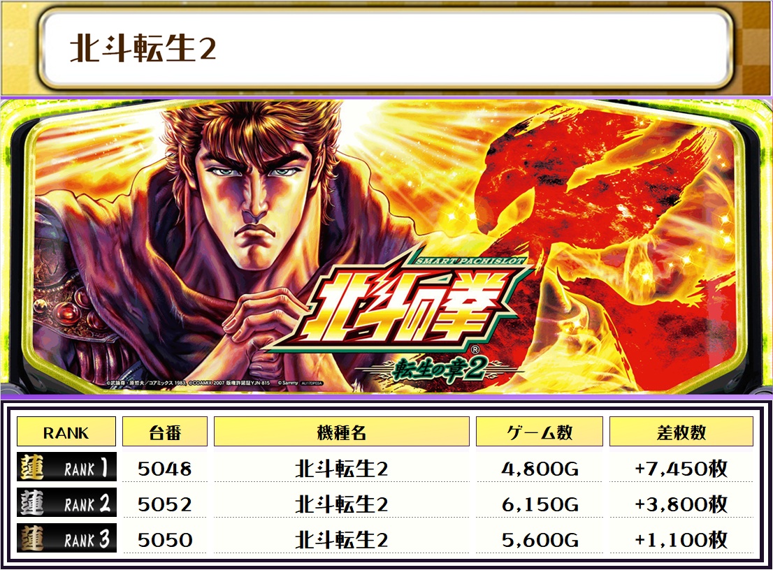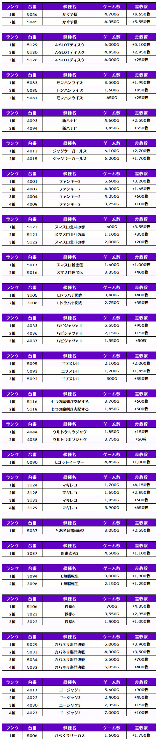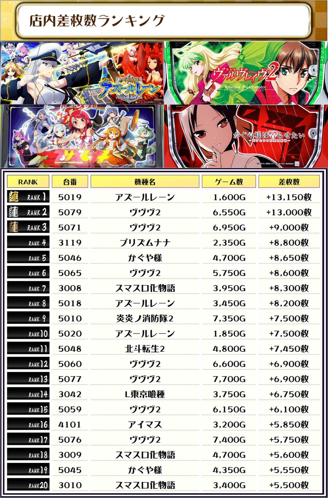 ということで、この日の店舗全体差枚数ランキングがこちらです!!