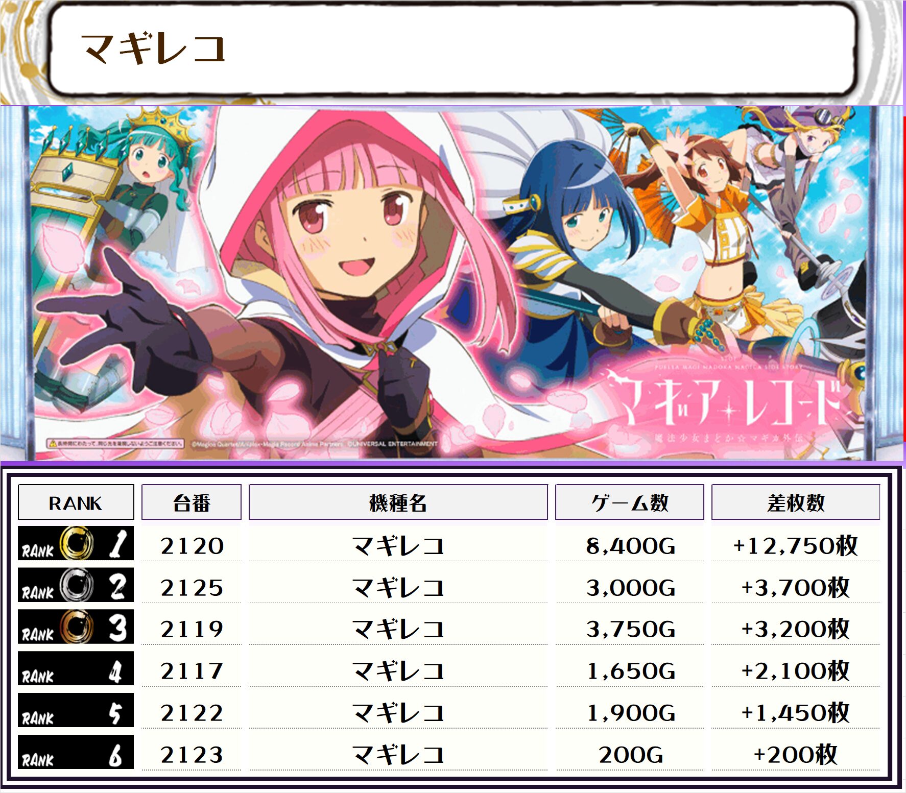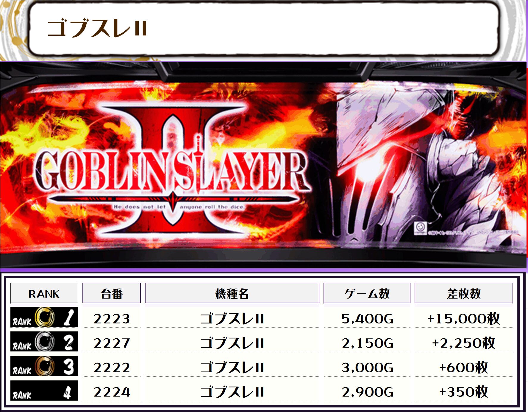 2位には【ゴブスレⅡ・2223番台】の+15,000枚、3位には【マギレコ・2120番台】の+12,750枚がランクインっ🏆🏆🏆🏆