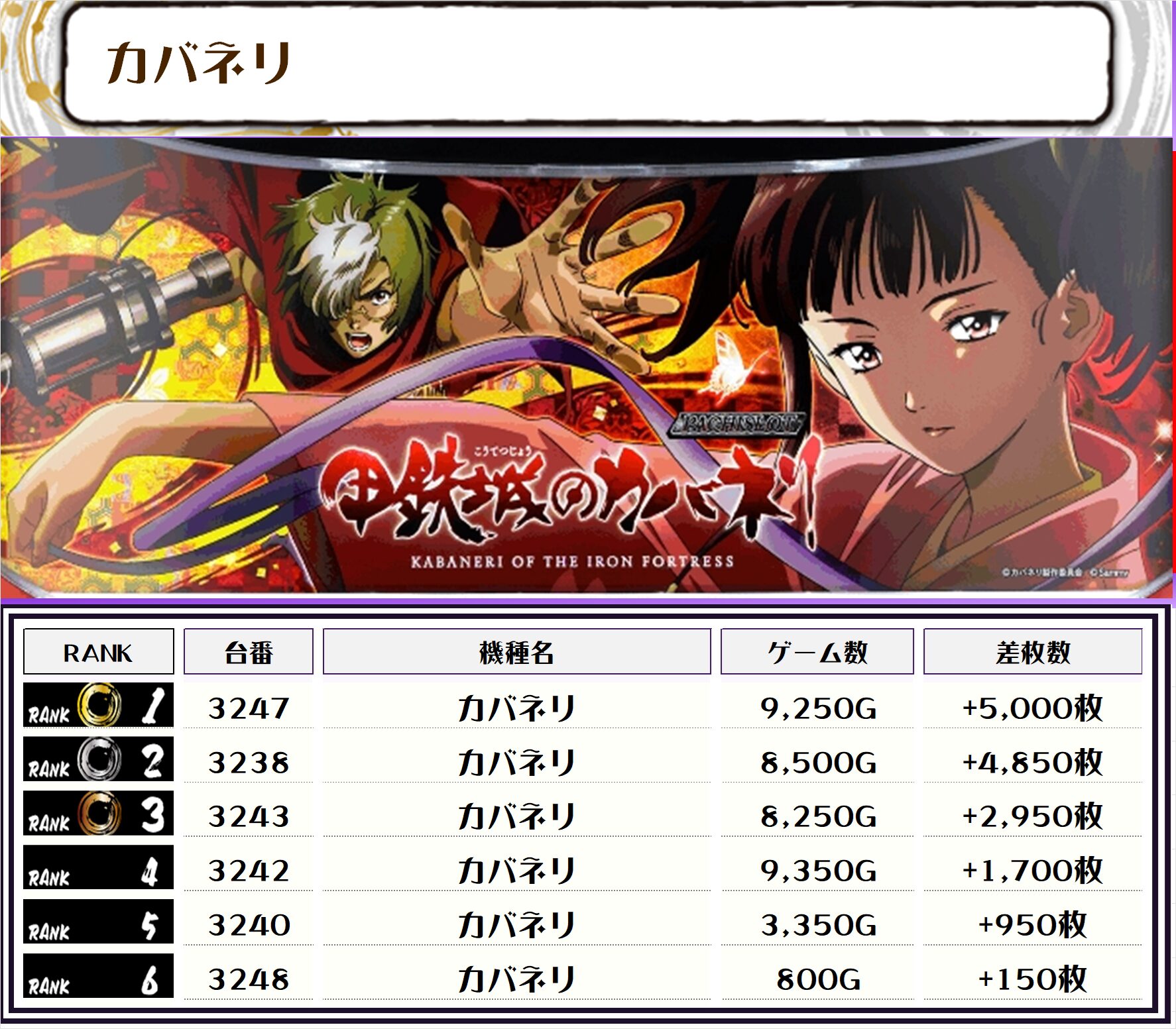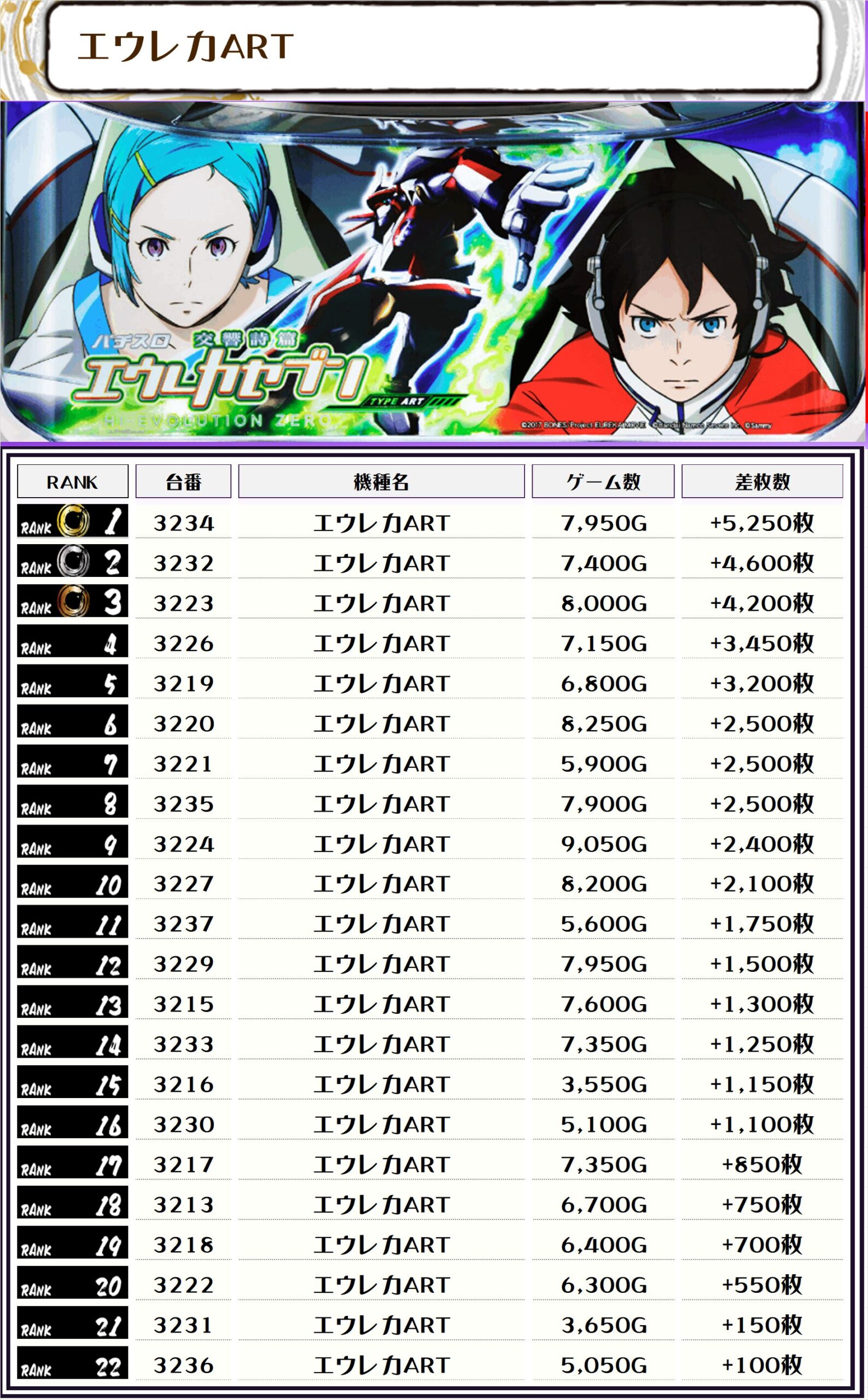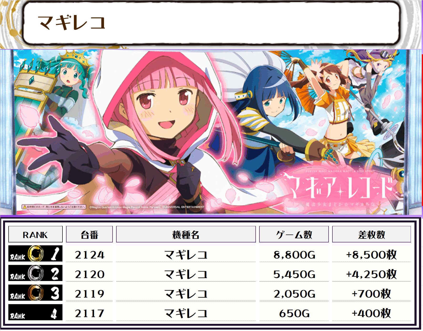 2位には【戦国乙女4・2106番台】の+13,800枚、3位には【Lゴッドイーター・2037番台】の+11,400枚がランクインっ🏆🏆🏆🏆