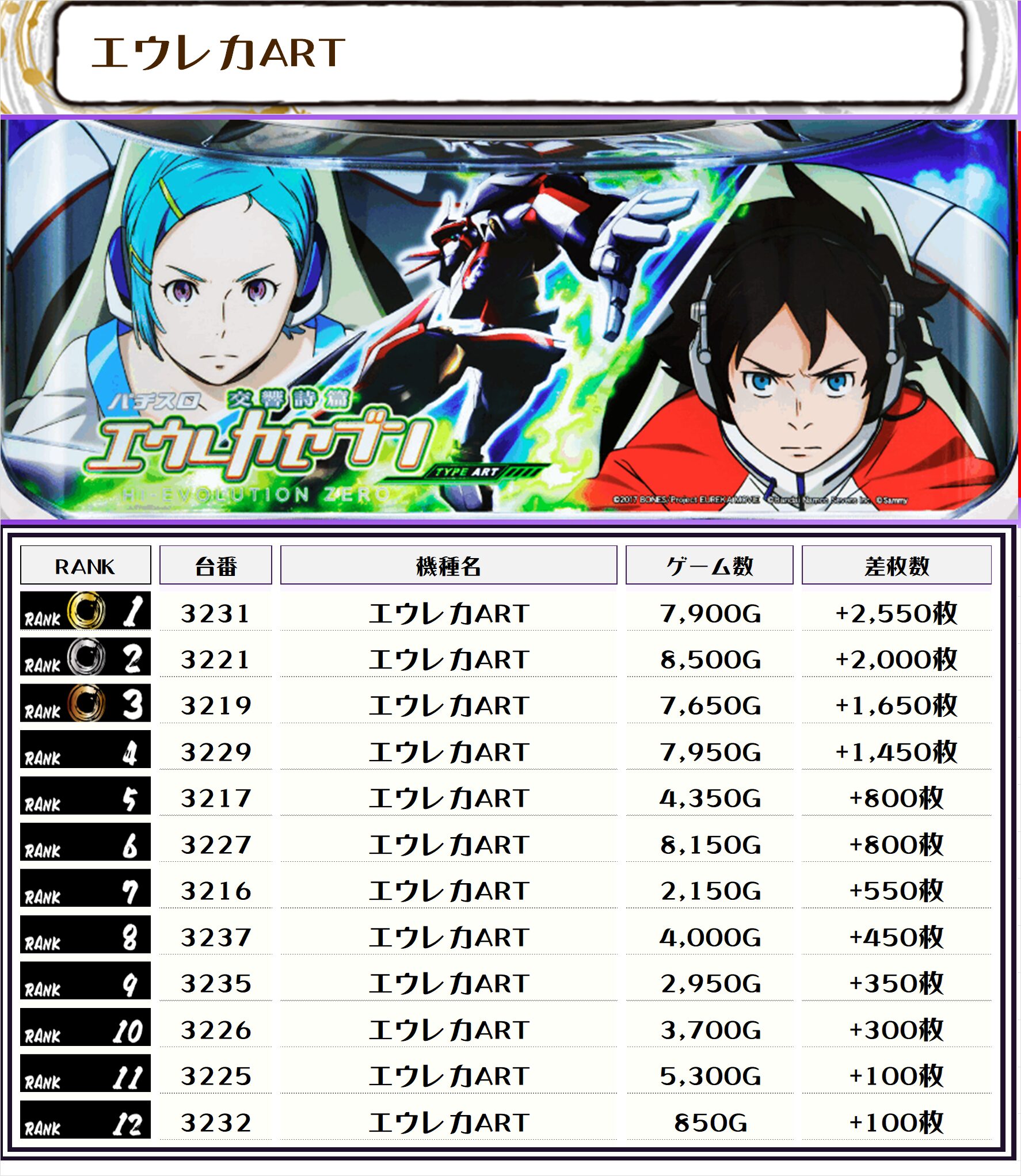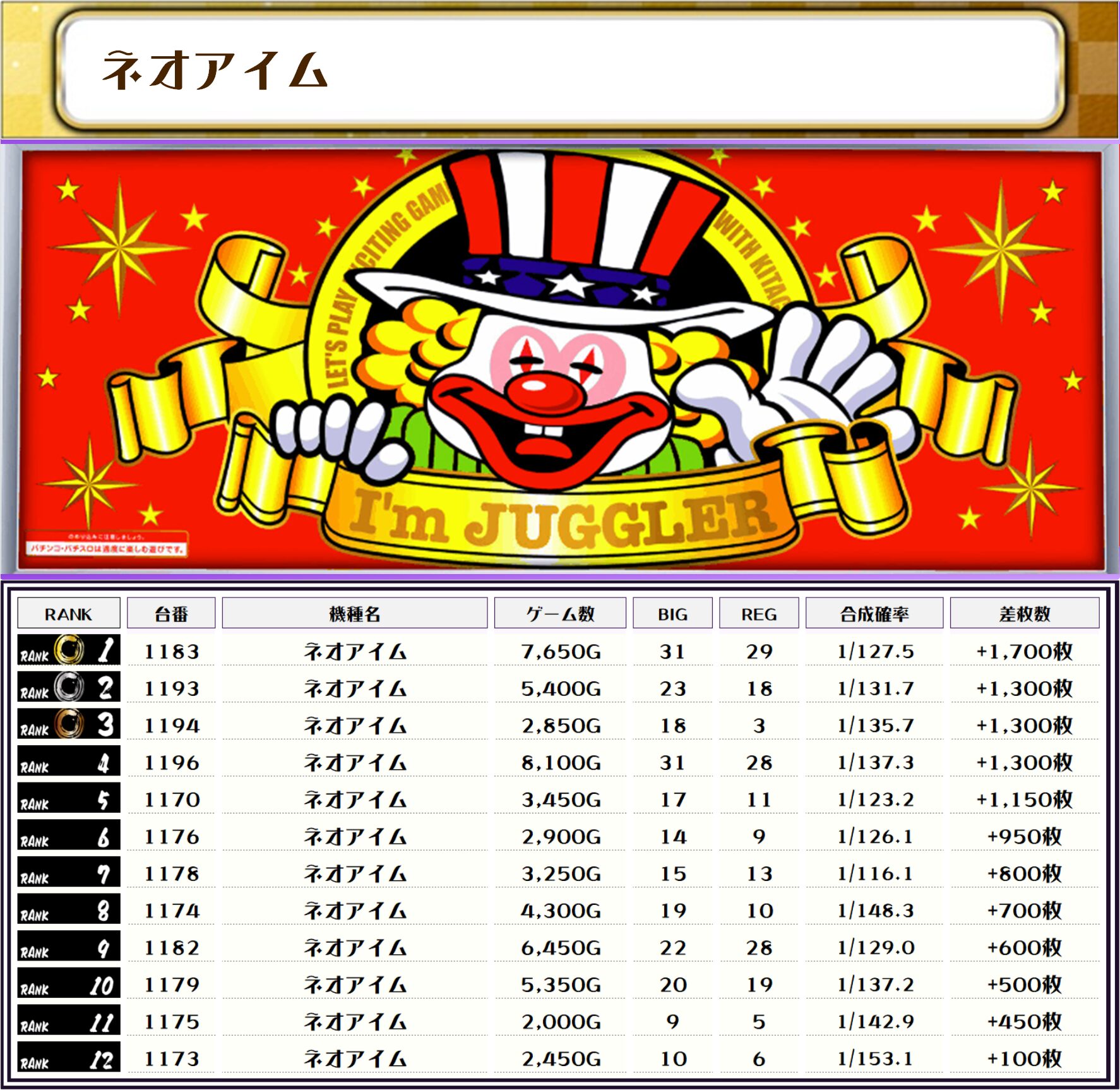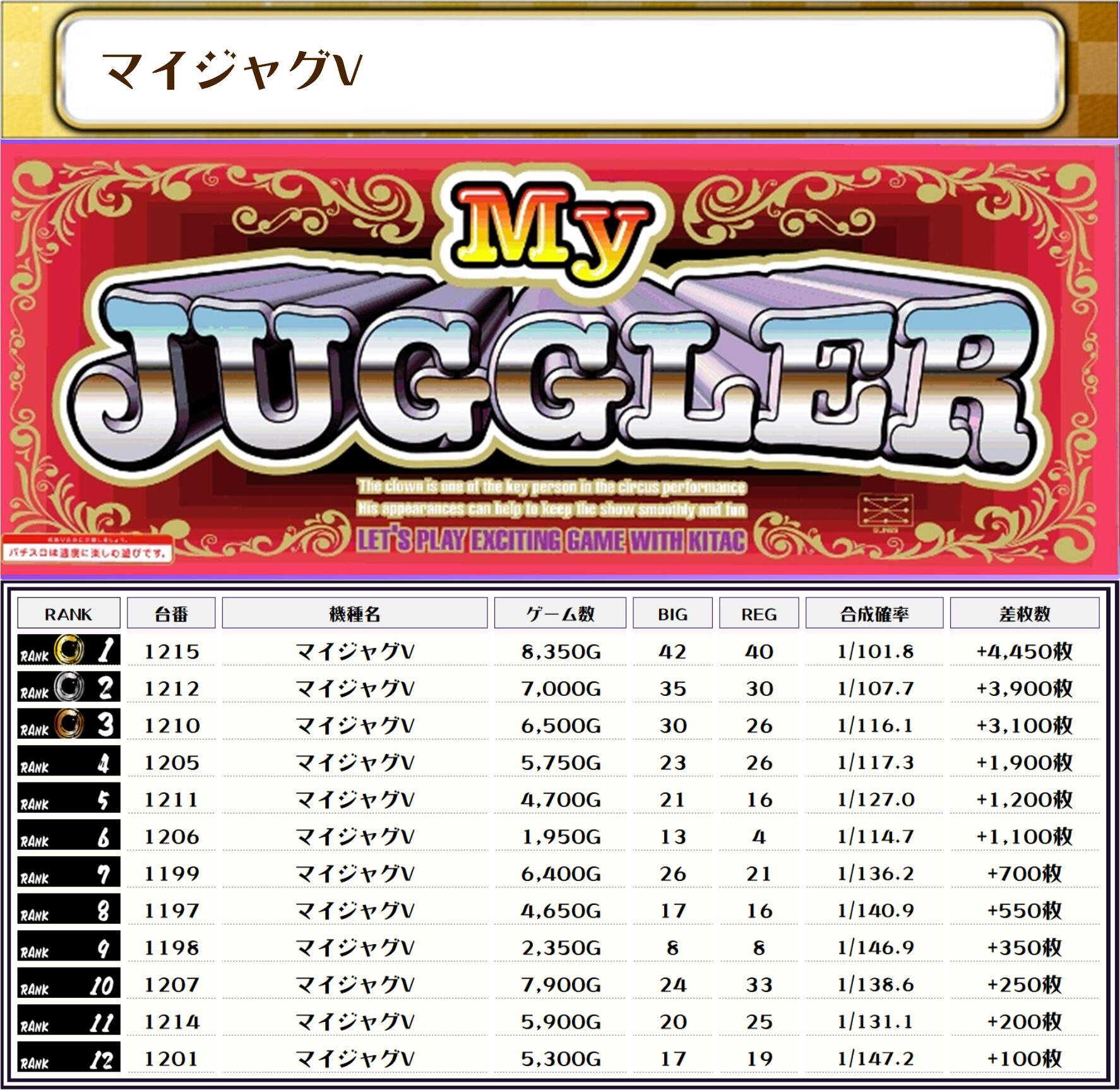 また、この日の注目台差枚ランキングがこちら❗️