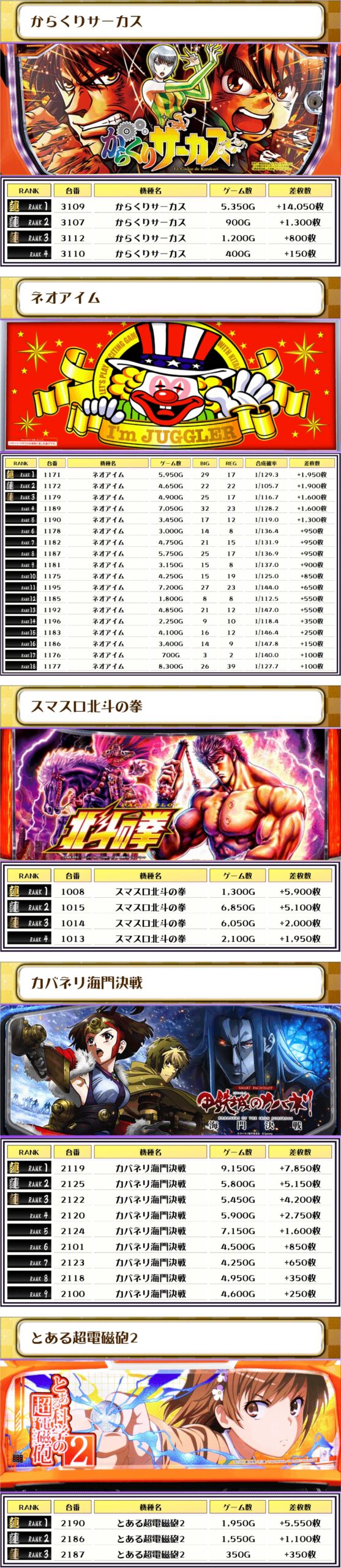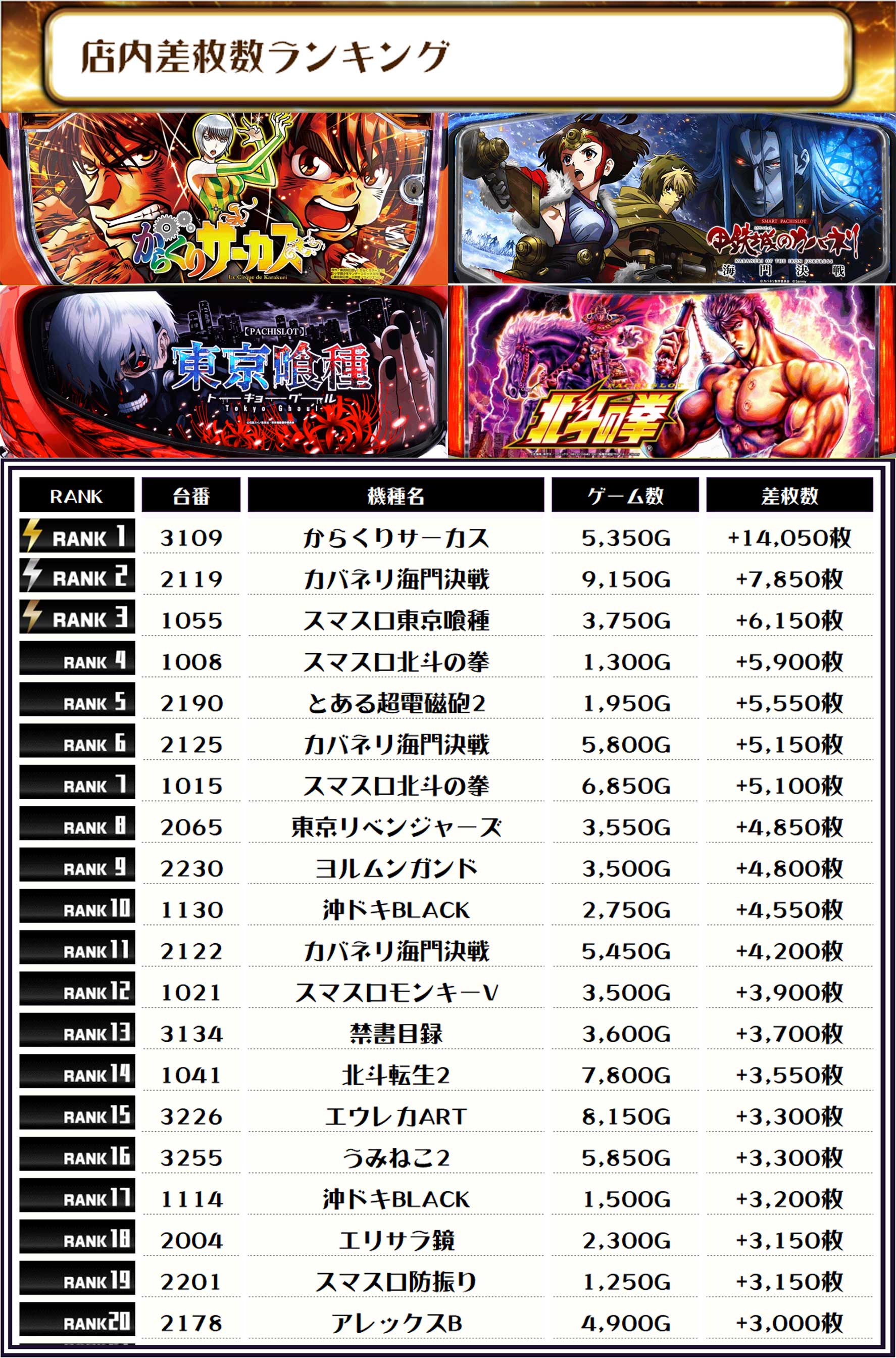 続いては【店内全台の差枚ランキング】をご覧ください!