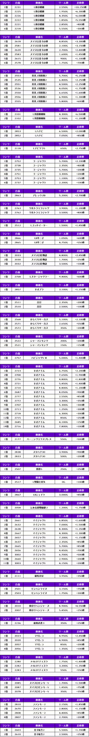 その他の機種の差枚はコチラ❗️