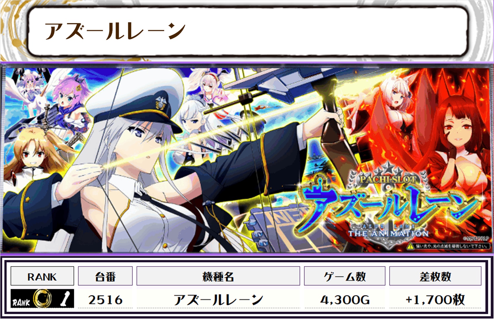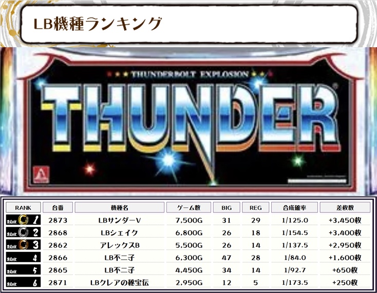 複数設置機種だけでなく、アズールレーンなどの少数台機種や、LB不二子やLBシェイクなどのBT機種などにもたくさんの優秀台を多数確認しました👀