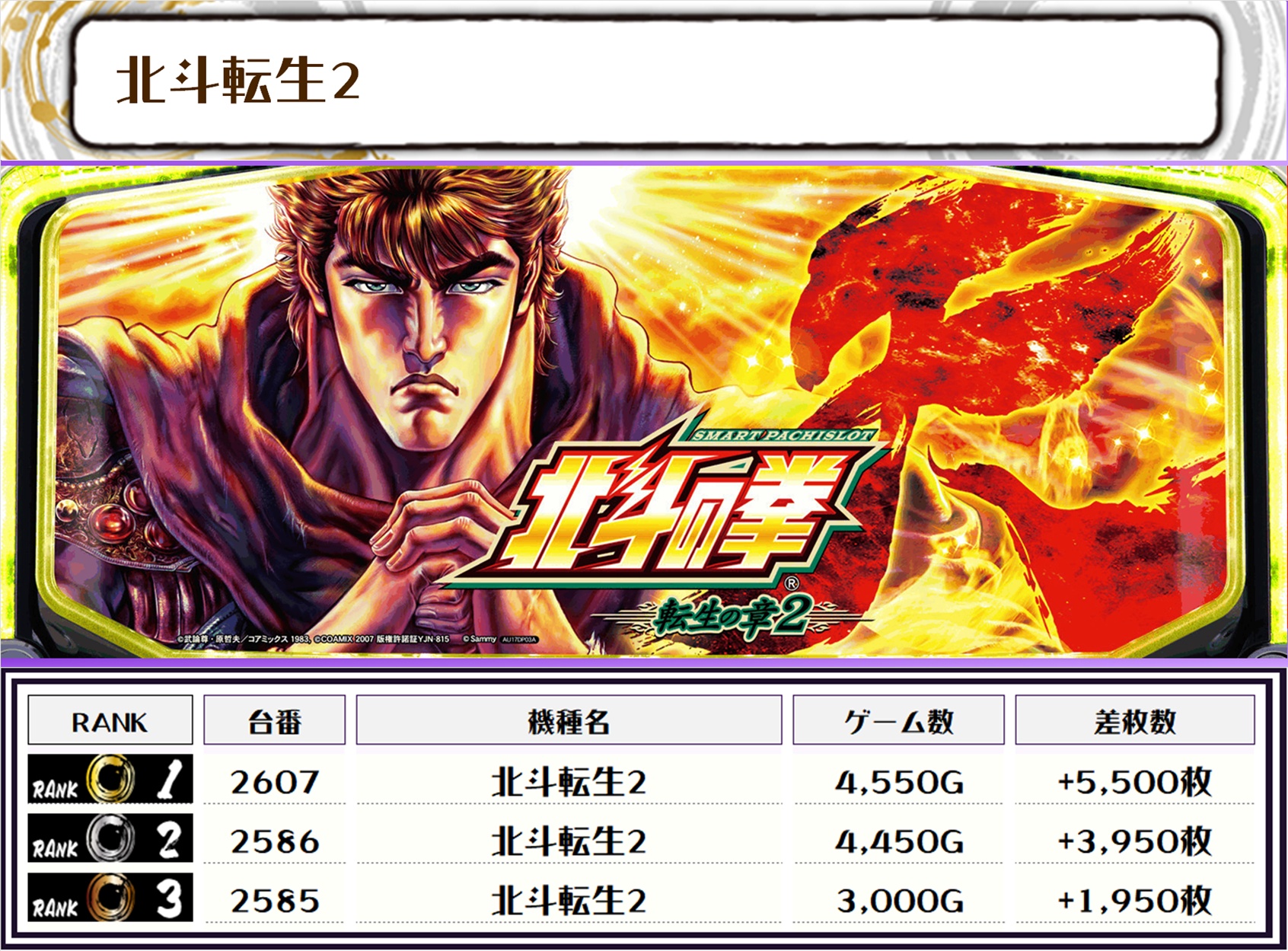 この日全体の差枚トップに輝いたのは【スマスロ北斗の拳・2578番台】の+10,750枚‼️