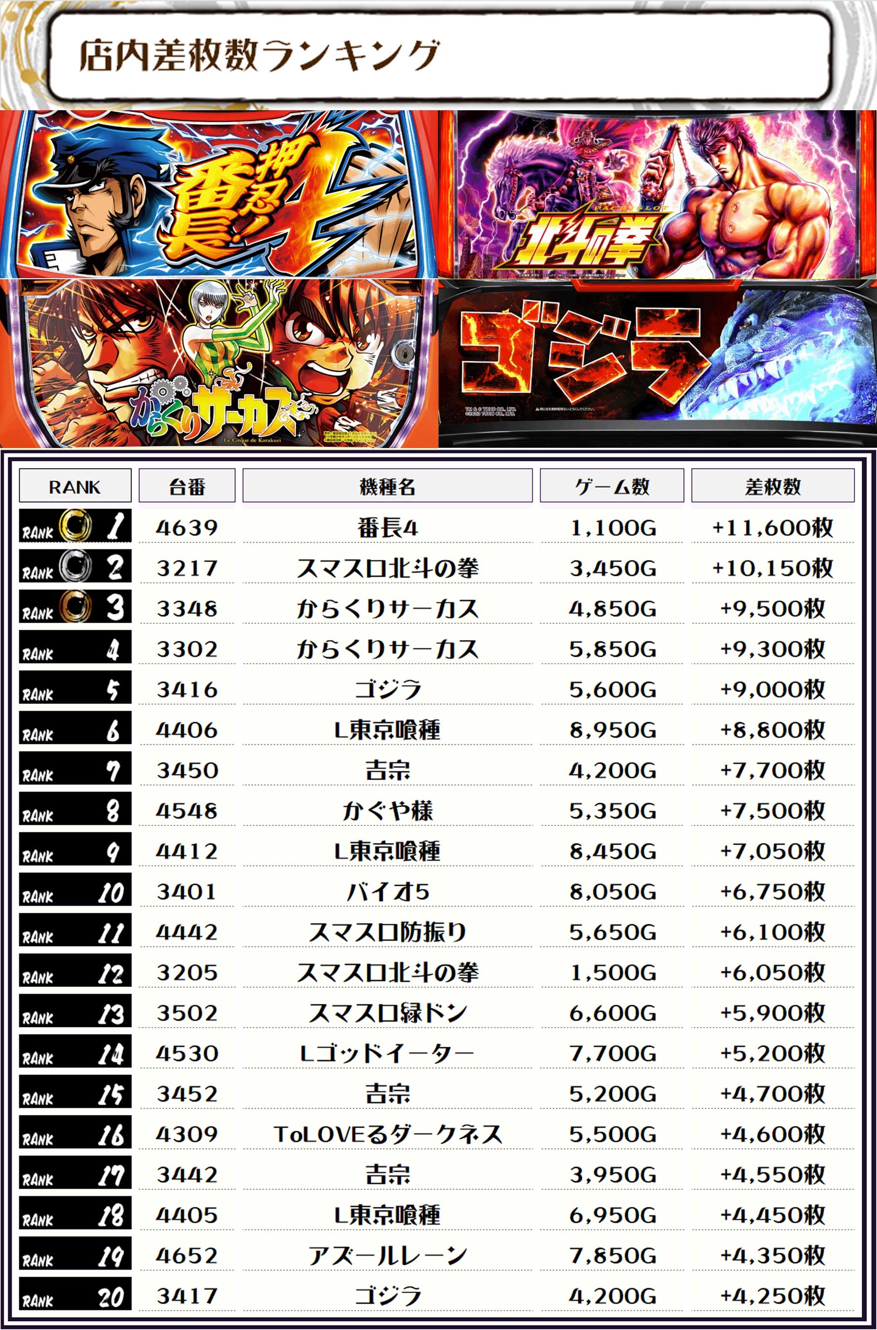 また、この日の店内差枚数ランキングはこちらになりますっ❗️