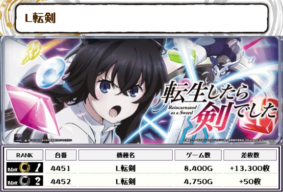 この日、全体の差枚トップに輝いたのは【L転剣・4451番台】で+13,300枚‼️