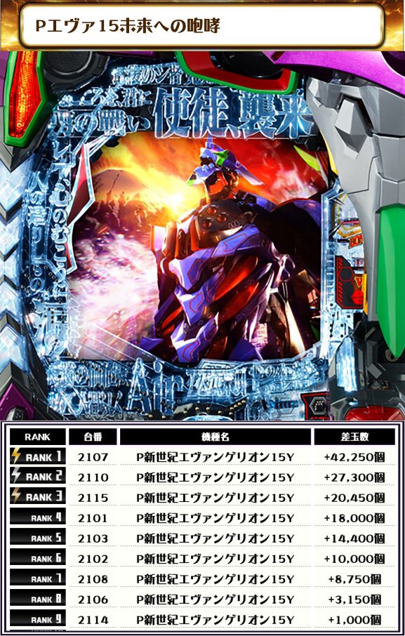 2位には【Pエヴァ15未来への咆哮・2110番台】の+27,300個、3位には【Pエヴァ15未来への咆哮・2115番台】の+20,450個がランクインっ🏆
