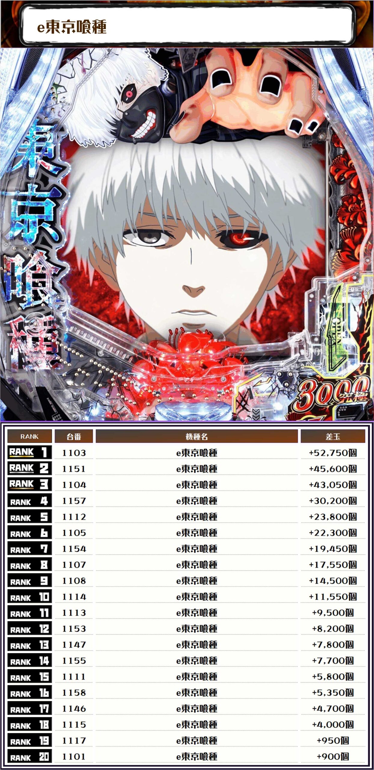 今回も前回と同様に、e東京喰種の稼働が抜群だったな👍