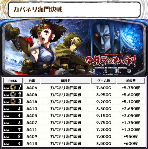 特にカバネリ海門決戦はランキングにも多くランクインしてきていて優秀台が多かった印象✨